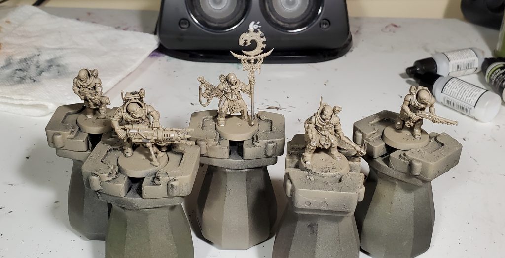 What ended up happening was that I bought some chipping medium and a box of Vallejo air paints for another project and decided that I could test them on something "simple". With the initial sandy colour figured out, the rest ended up being mostly just seeing how I could get the red and purple of leviathan in there. I think they ended up working pretty well given how its comparatively simple for one of my schemes! With the background out of the way, lets move on to getting paint on models...