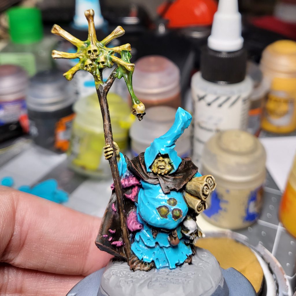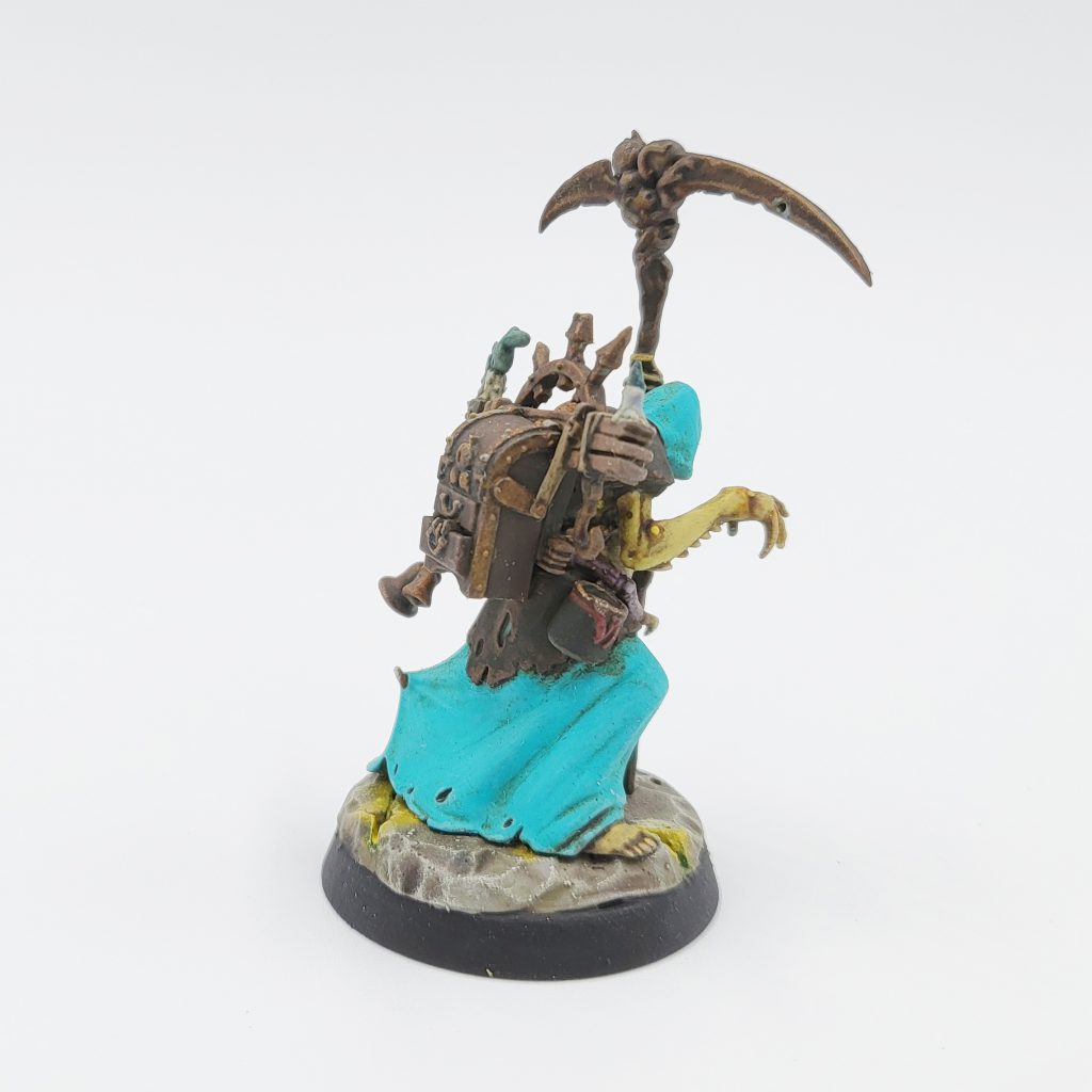 Shout out to my clubmate Colin's streaking grime-centric Maggotkin / Death Guard scheme, which gave me the inspiration to tackle it in Teal!