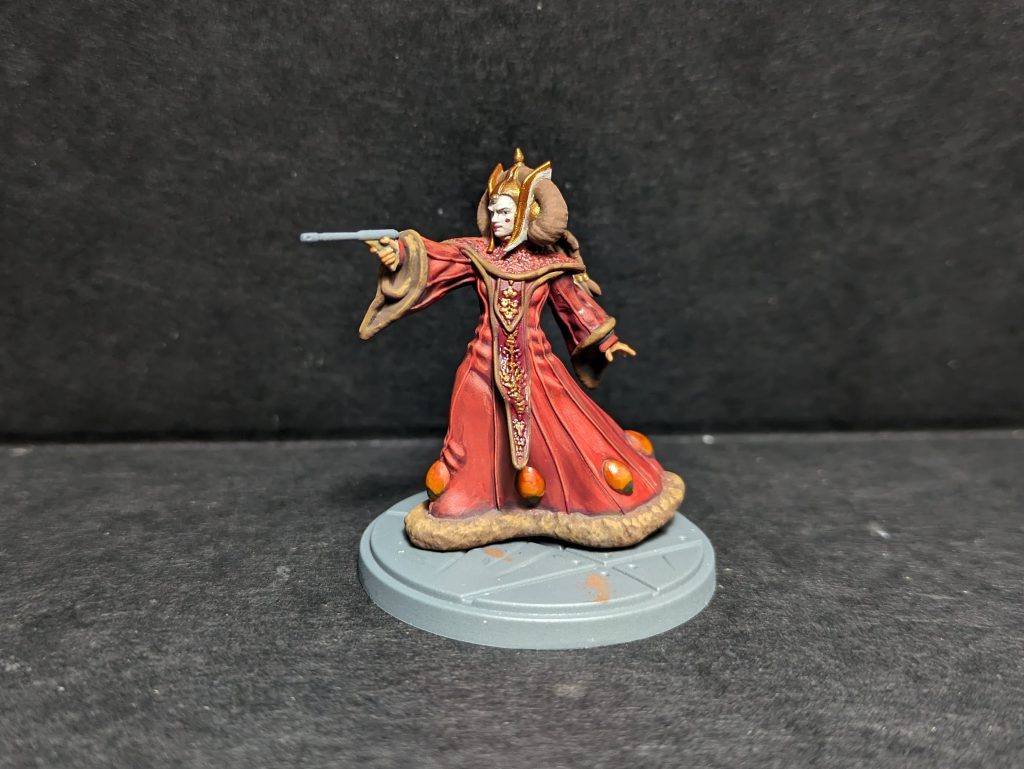 For her red robes, use the same mix as Padme used, and the same is true for her skin tones, her gun, and her hair. Just follow the guides above for those areas.