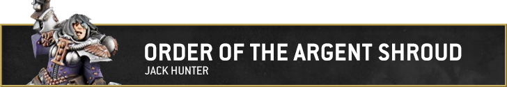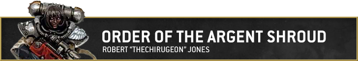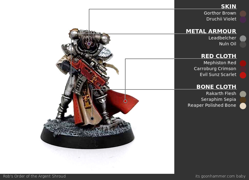 The Argent Shroud are one of the easier schemes for the Sisters, but still a striking one. The canon paint scheme for them uses red and bone-colored robes.