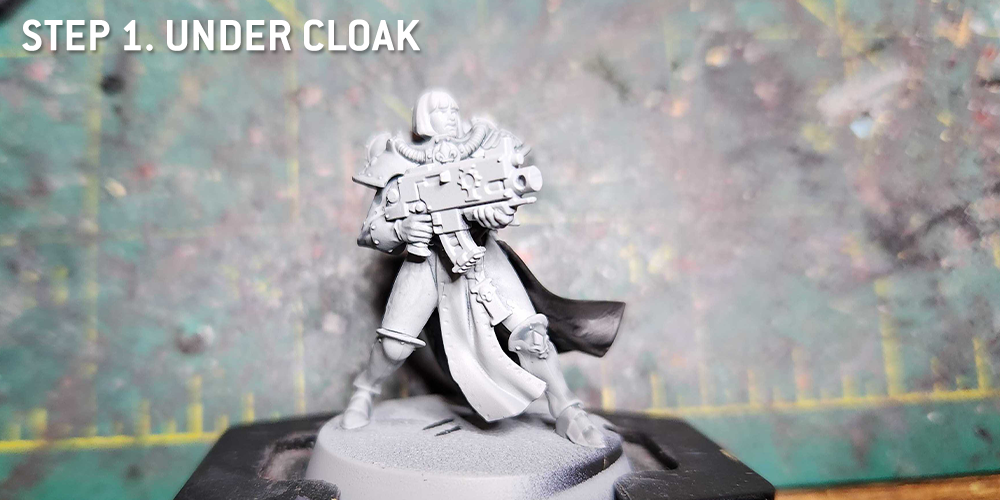 The Undercloak hast to be fully painted at this point. That's Grey Seer, then shaded with Apothecary White and highlighted with Grey Seer and Reaper Pure White.