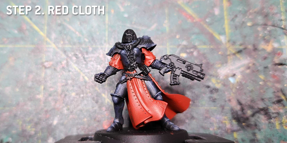 This is pretty straightforward: Just paint the cloth parts with Mephiston Red.