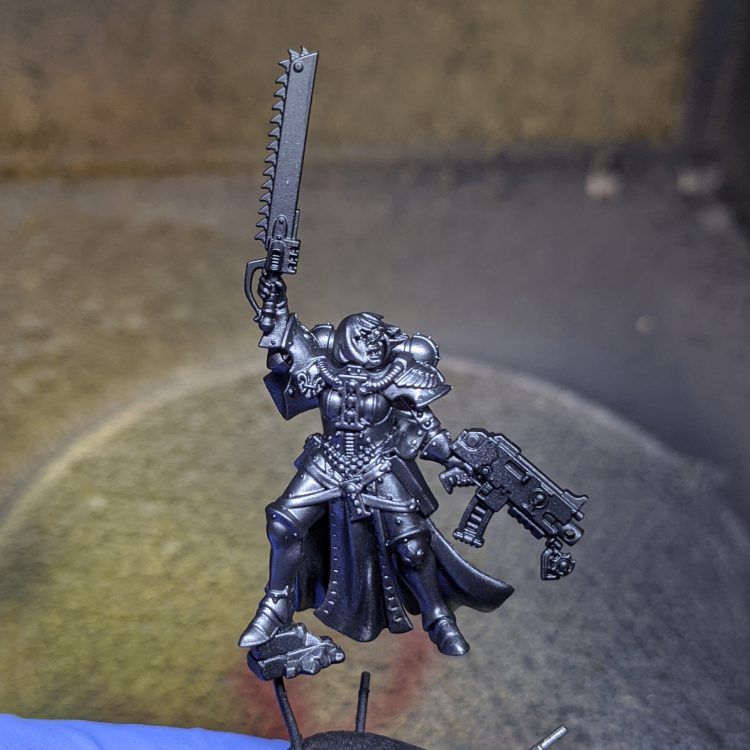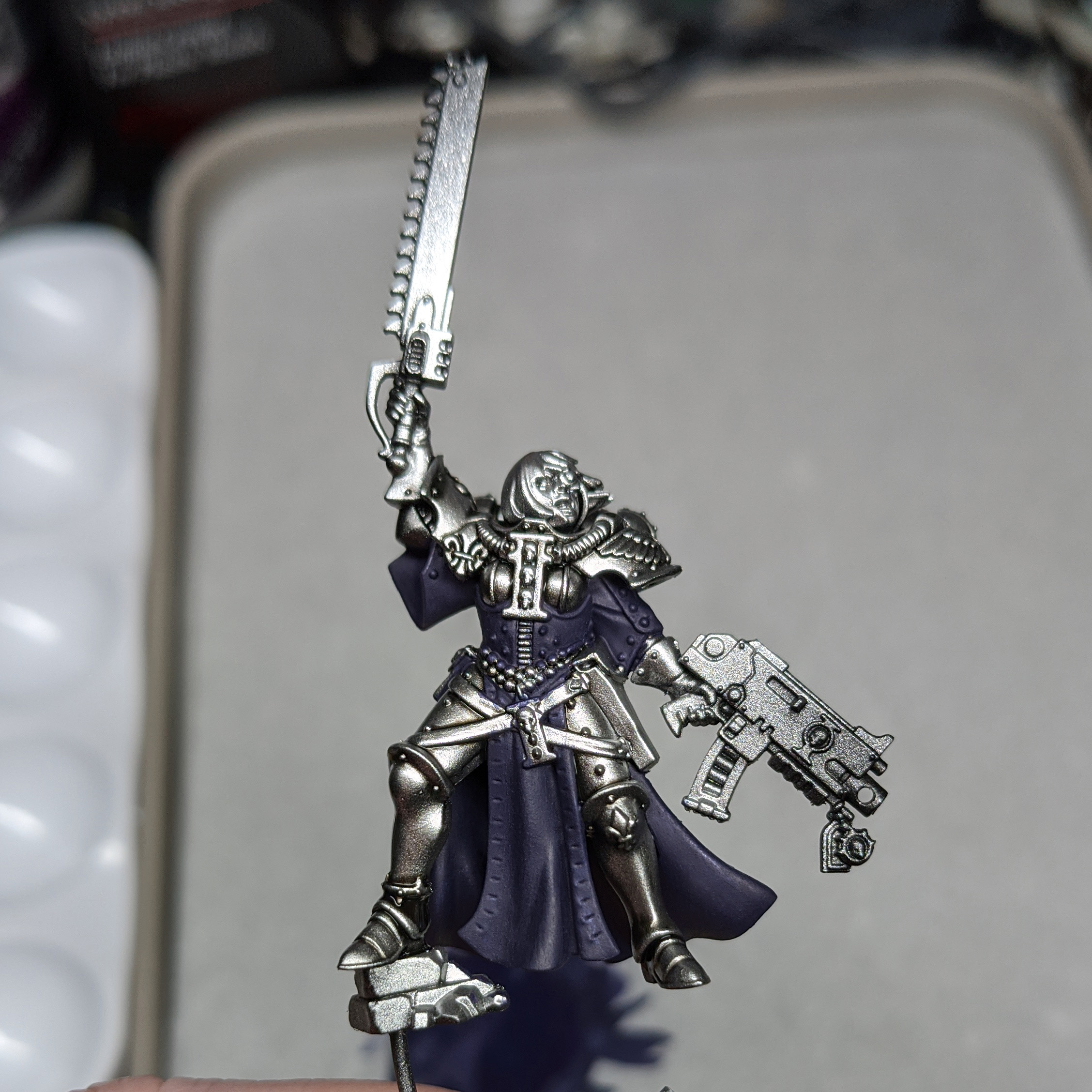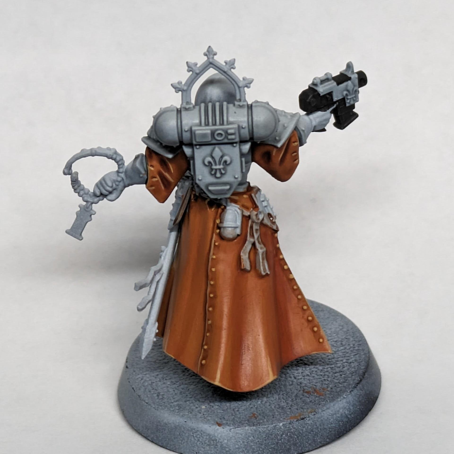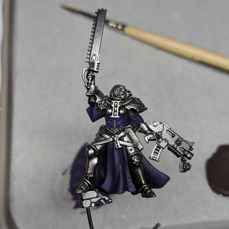 I always prefer to paint with subassemblies, especially on a model like the canoness because there are large areas that would have been impossible to reach if she was fully glued together. There are of course disadvantages to doing this, especially with a two-part cloak, which can end up with bad gaps and inconsistent shadows/highlights.