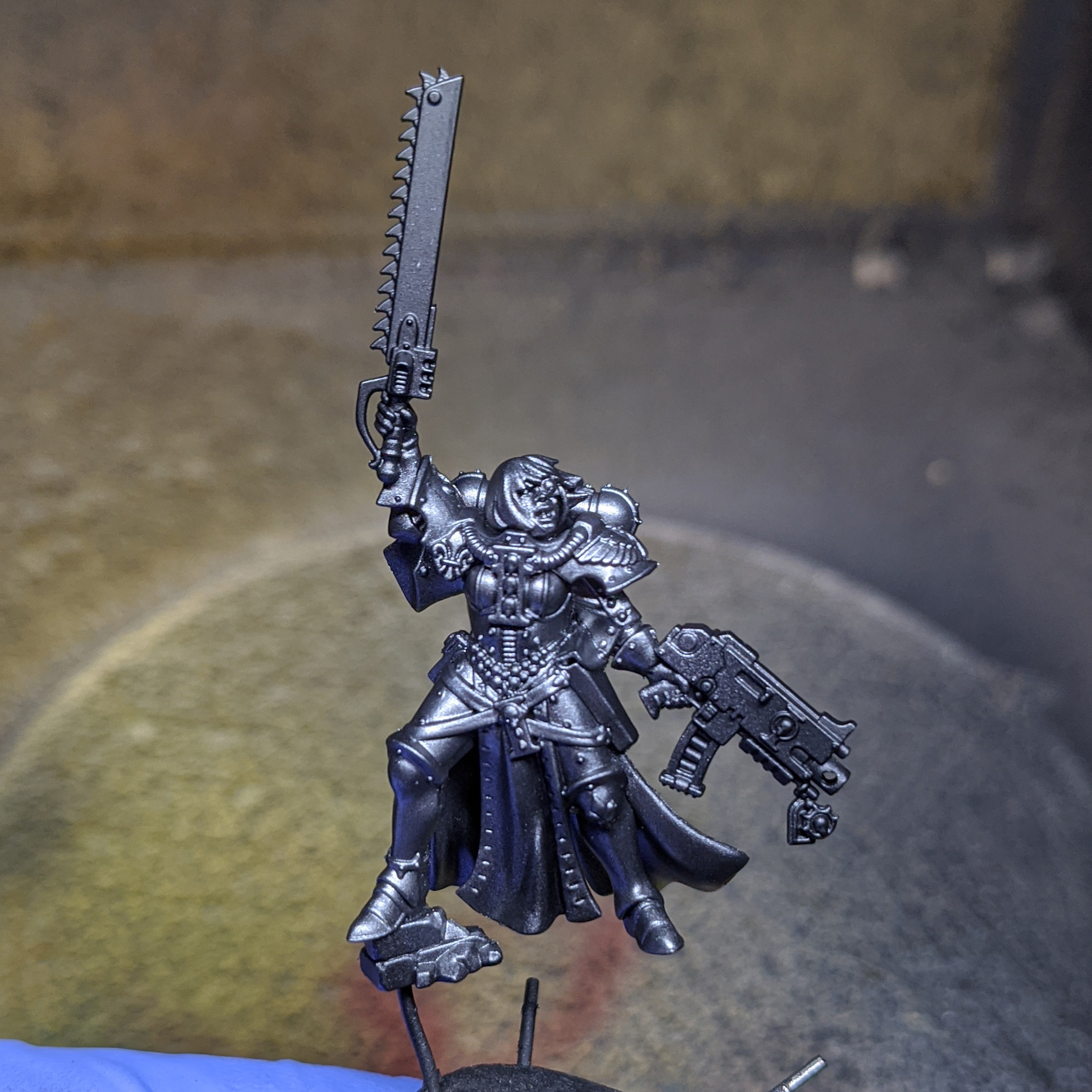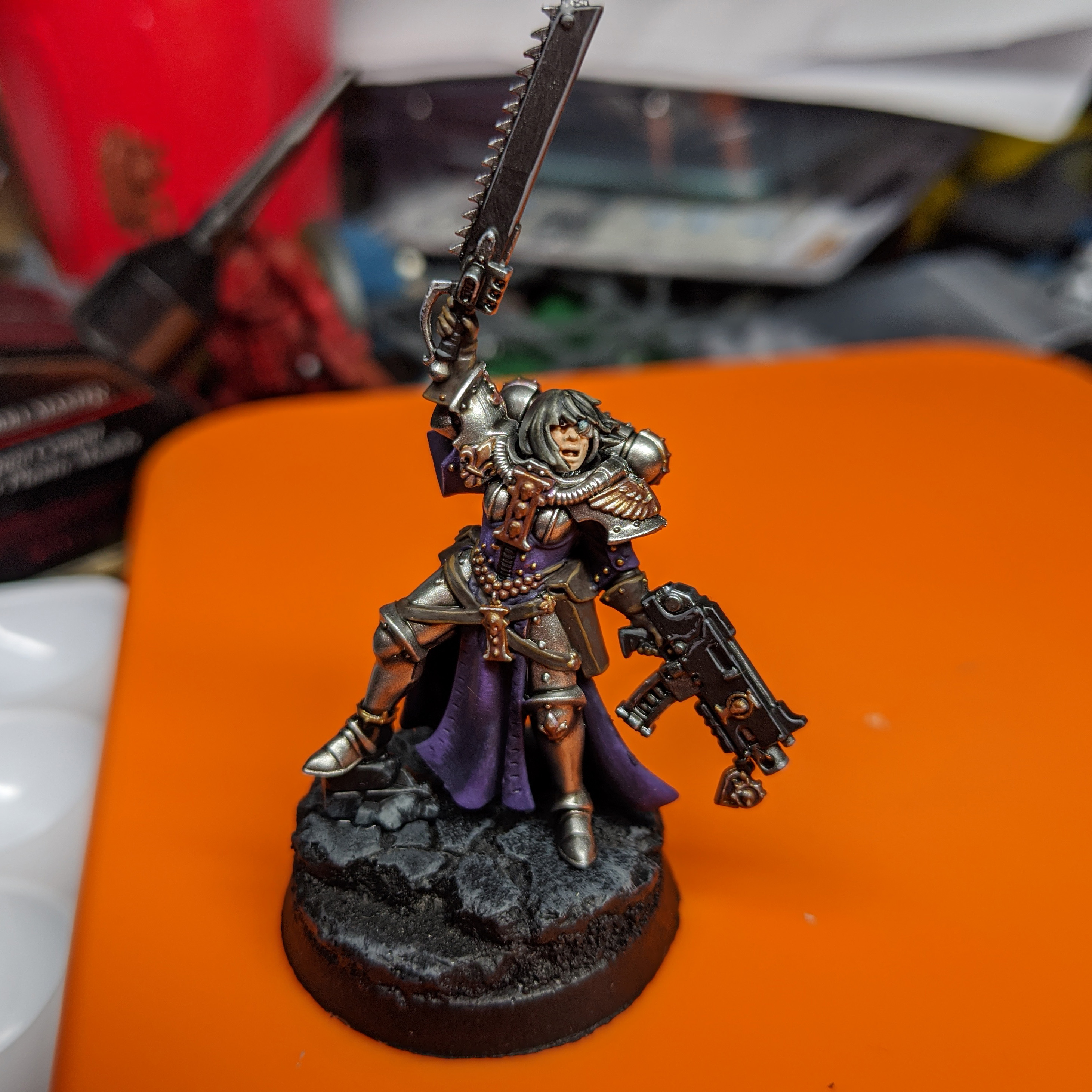 I’ve only just started the hobby for myself, however I’ve been painting some of my partner’s Ad Mech and have a background in art. Most of my process is a lot of trial and error or making things up as I go along! I have a small collection of original Sisters of Battle following the Order of Our Martyred Lady scheme with a few minor tweaks.