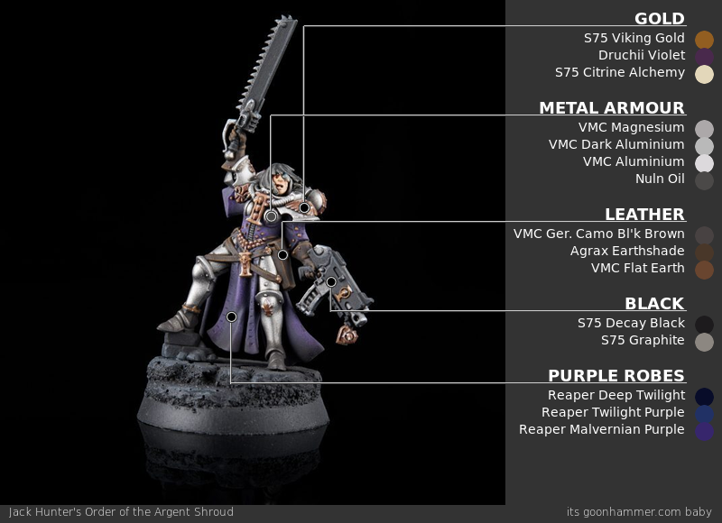 - Golds: S75 SC-72 Viking Gold, Citadel Druchii Violet, S75 SC-75 Citrine Alchemy