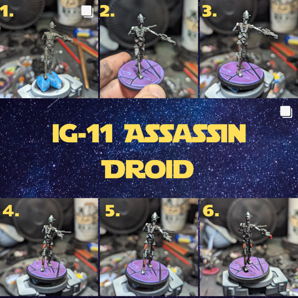 The IG-11 Assassin Droid was the easiest of the three models to complete, as he was just highlighted grey for the most part, with some color splashes thrown in to break up the monotony.