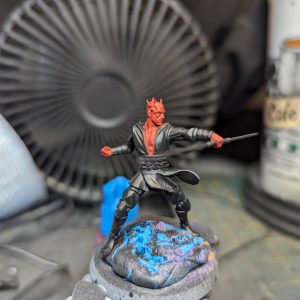 Like I do with all of my miniatures after assembly, I sprayed Maul with Stynlrez Black Primer through my Badger Patriot 105 airbrush. This primer keeps all of the detail visible and gives a good base to work from for all of my other colors. Basically, I’ve used it so much, I have a pretty good idea of how it will impact and interact with the colors I put on top of it.