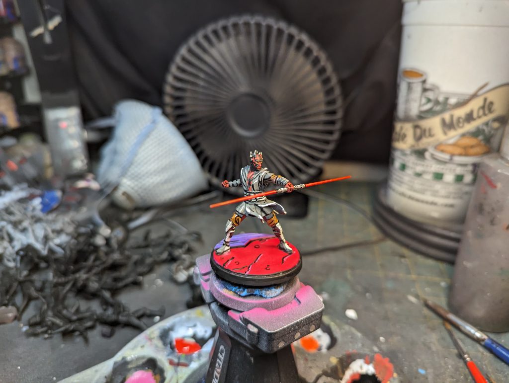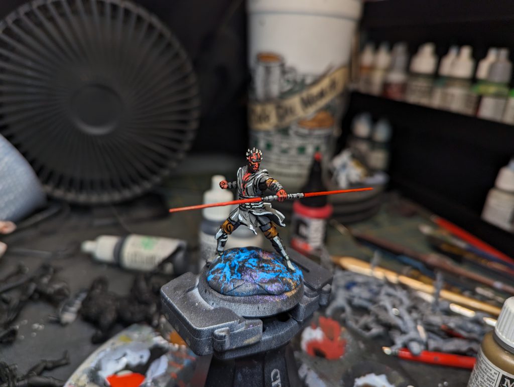 I painted his dual lightsaber with Scale75 Blood Red, GW Wild Rider Red, and then Scale75 Red Ink to really punch up the color.