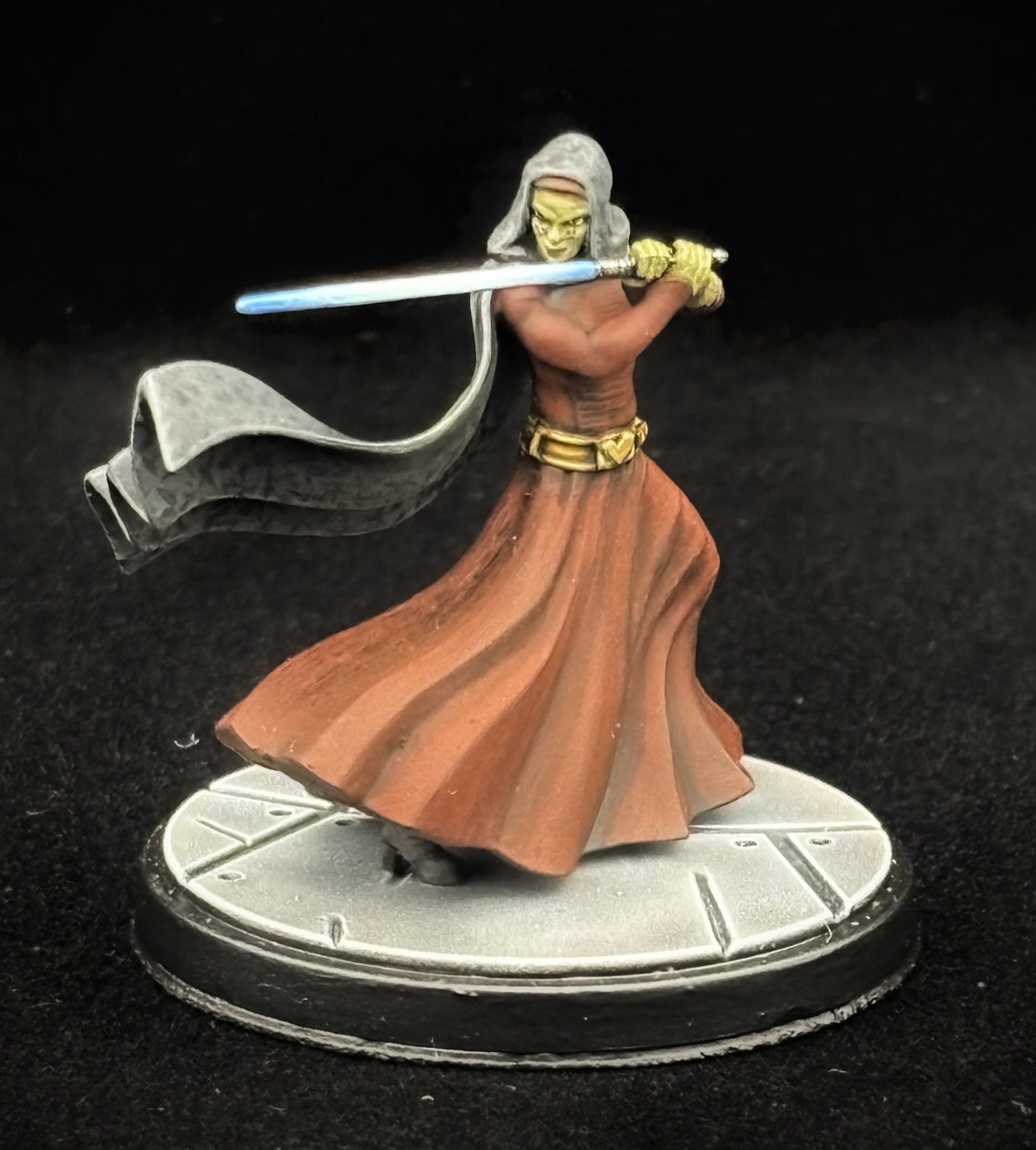 Barriss is a very simple model in a lot of respects- her robe and cloak cover 90% of the model! Painting her up is pretty easy, but a word of caution- I strongly recommend painting Barriss with her lightsaber separate. You can attach the lightsaber and then paint it once the rest of the model is done if you want (I did), but you are going to find painting her, especially her face, much easier if it is not attached until that final step.