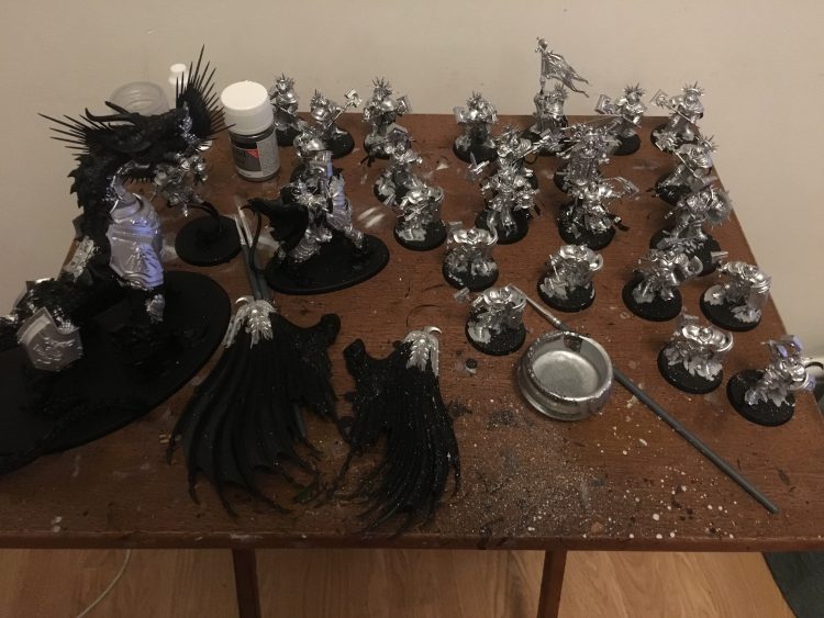 Right, now that's over - I coated the models in liquid silver. This is crazily bright and shiney and looks pretty awesome, it is also ridiculously messy!