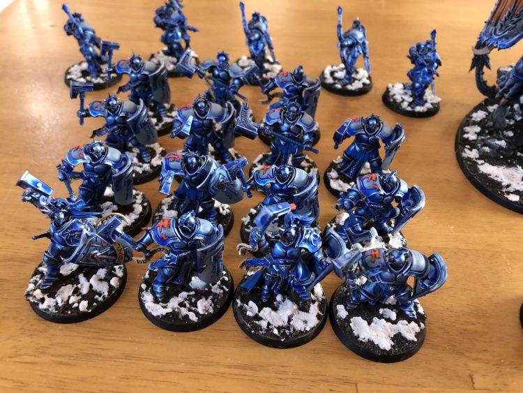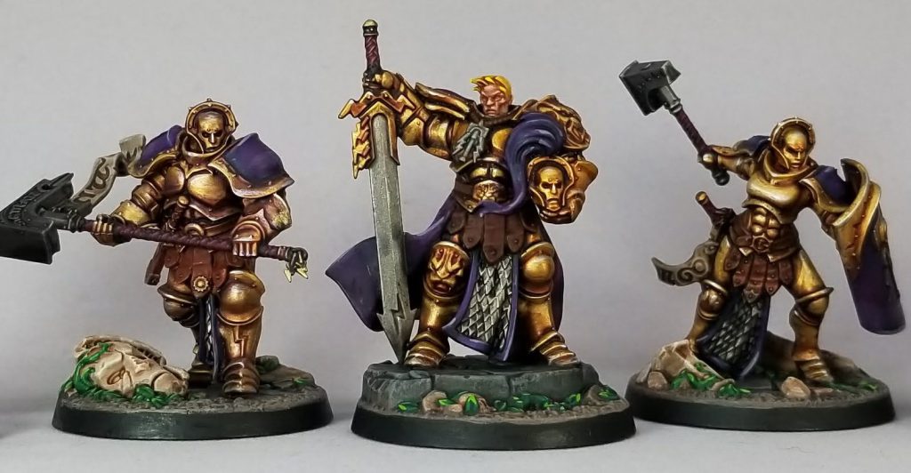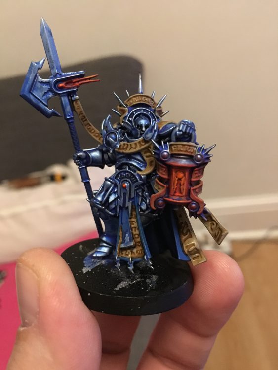 My Stormcast follow a very simple scheme to get tabletop standard miniatures turned out fairly quickly. It's the gold and blue scheme frequently seen on Stormcast, and is easy to replicate and paint across squads, warbands, etc of Stormcast minis.