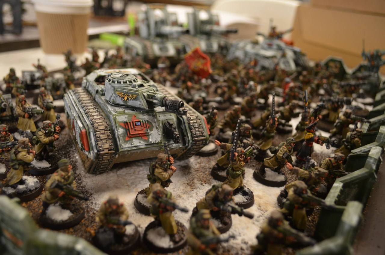 The Vostroyan Firstborn are a regiment who are sourced from the world Vostroya, an Industrial world who refused to send troops to aid the Emperor during the Heresy and instead opted to make a bunch of weapons. That was widely seen as a mistake, and since then the Vostroyans have agreed to send all of their first-born children to serve in the guard. They're yet another regiment modeled after Russians.