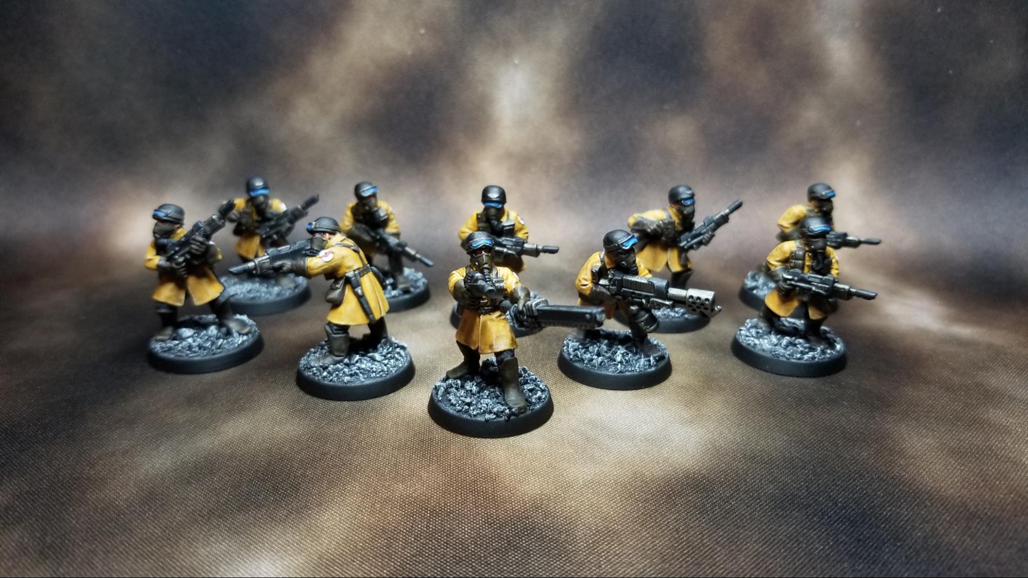 How to paint notable regiments of the Astra Militarum, such as Tempestus Scions, Kasrkin, and Death Korps.