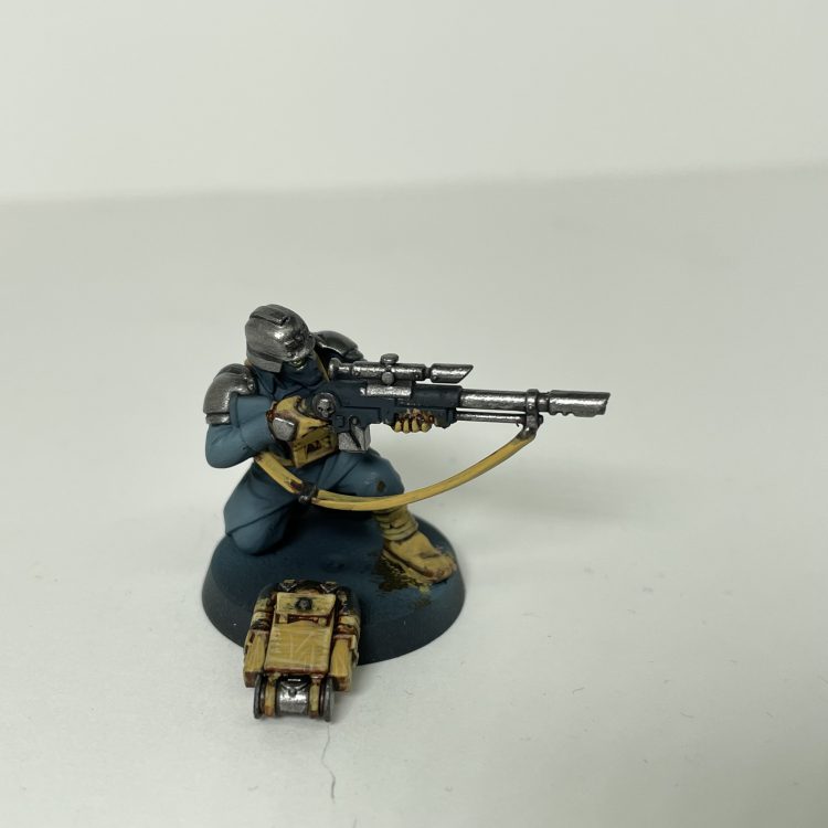 Weapon casings: P3 Thamar Black, then highlights of Eshin Grey and Dawnstone, same as the lasgun muzzles.