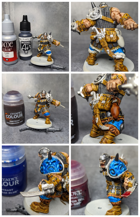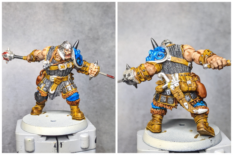 - Add a little more Gorthor Brown and do a second, thinner highlight on all said edges and folds, focusing on raised areas