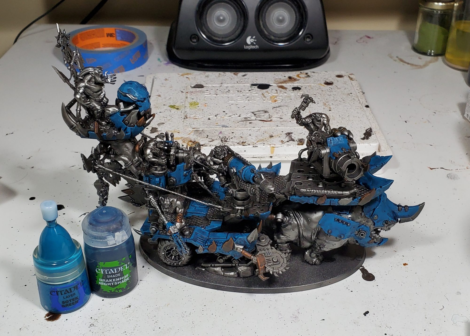 This bit is pretty simple just Sotek followed by Drakenhof, but before we get into the bright spot colours its helpful to get all the blue done so we don't have any of the wash bleed over or create a mess.
