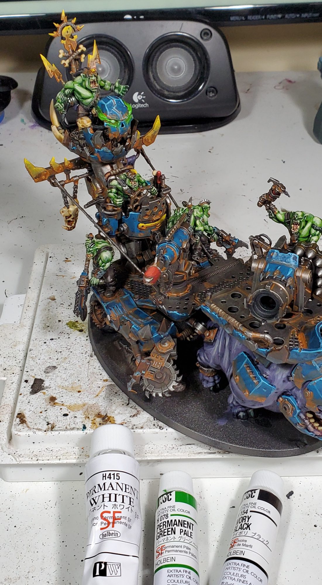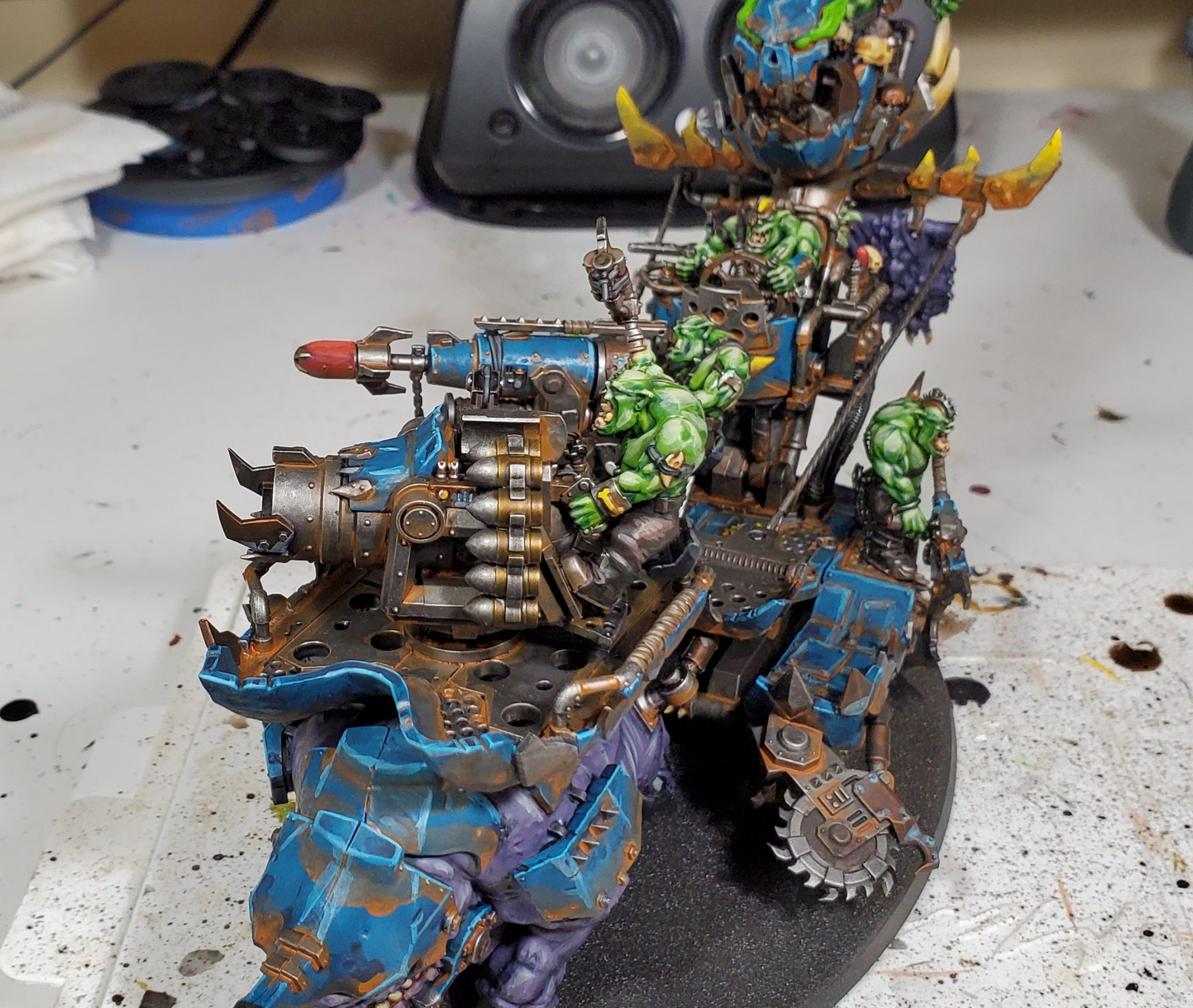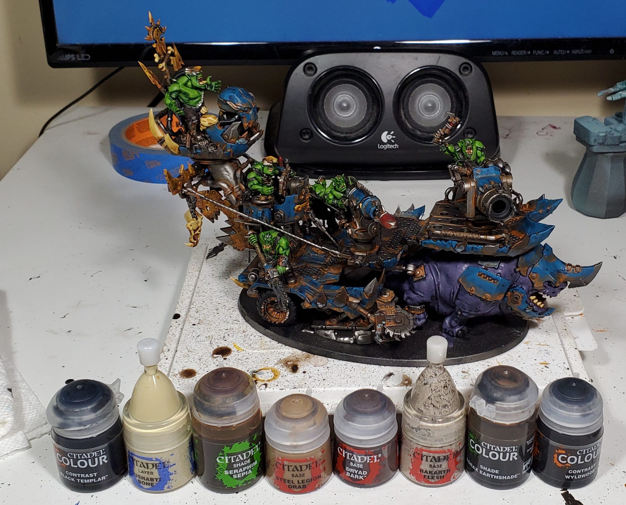 As mentioned in our preview article for the Kill Rig, this model was sent my way to get painted and I made sure to get enough pictures for a HTPE! This is going to kind of be a slightly more sane version of my ork scheme, if you've seen my Kommandos you will know I am a wee bit mad when it comes to excessively complex ork models. As it was, this model still took a whole six evenings to paint, almost twice as long as my Silent King!