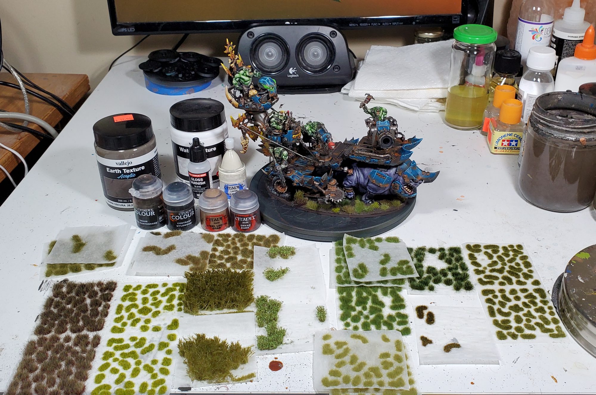 Once the water is done I apply Dryad to the rim of the base and throw on a big assortment of Gamers Grass tufts: