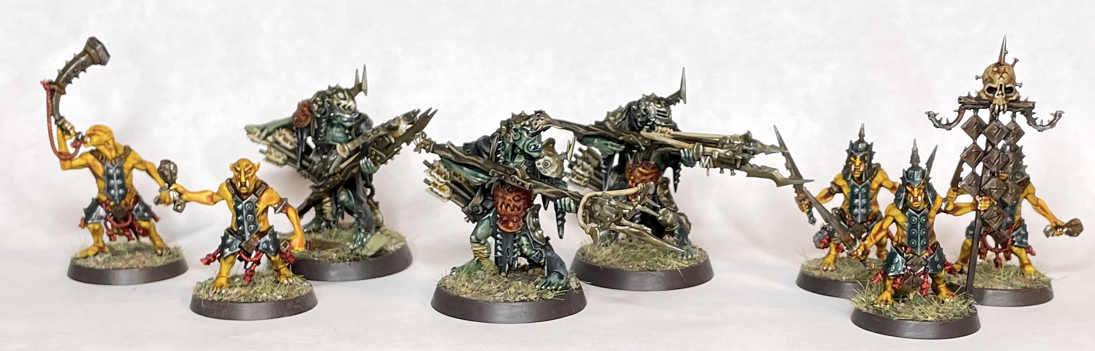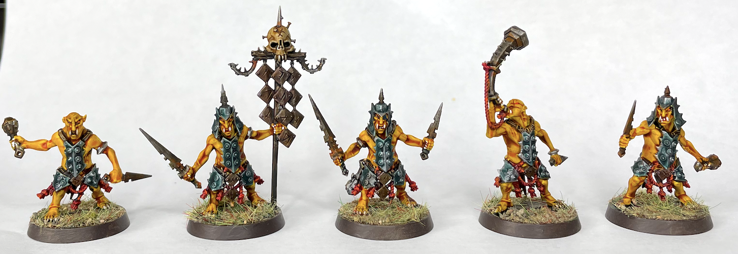 Overall I'm really chuffed with how these all turned out, and both paint jobs are super-quick to paint. The Hobgrots in particular are only a couple of hours to do in batches of 5, which is great when there are so many in the box. The Kruleboy colours are also really forgiving and you can get away with a lots of sloppy mistakes as the washes and the dry brushes tie everything together. I'm really looking forward to applying these schemes to the rest of the army.