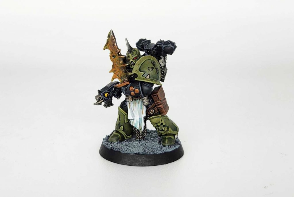 I ended up kitbashing my marine a bit, giving him the arm from a Plague Marine with a plague knife hand. It's a small bit swap but it goes a long way to giving the model a much more Nurgle feel.