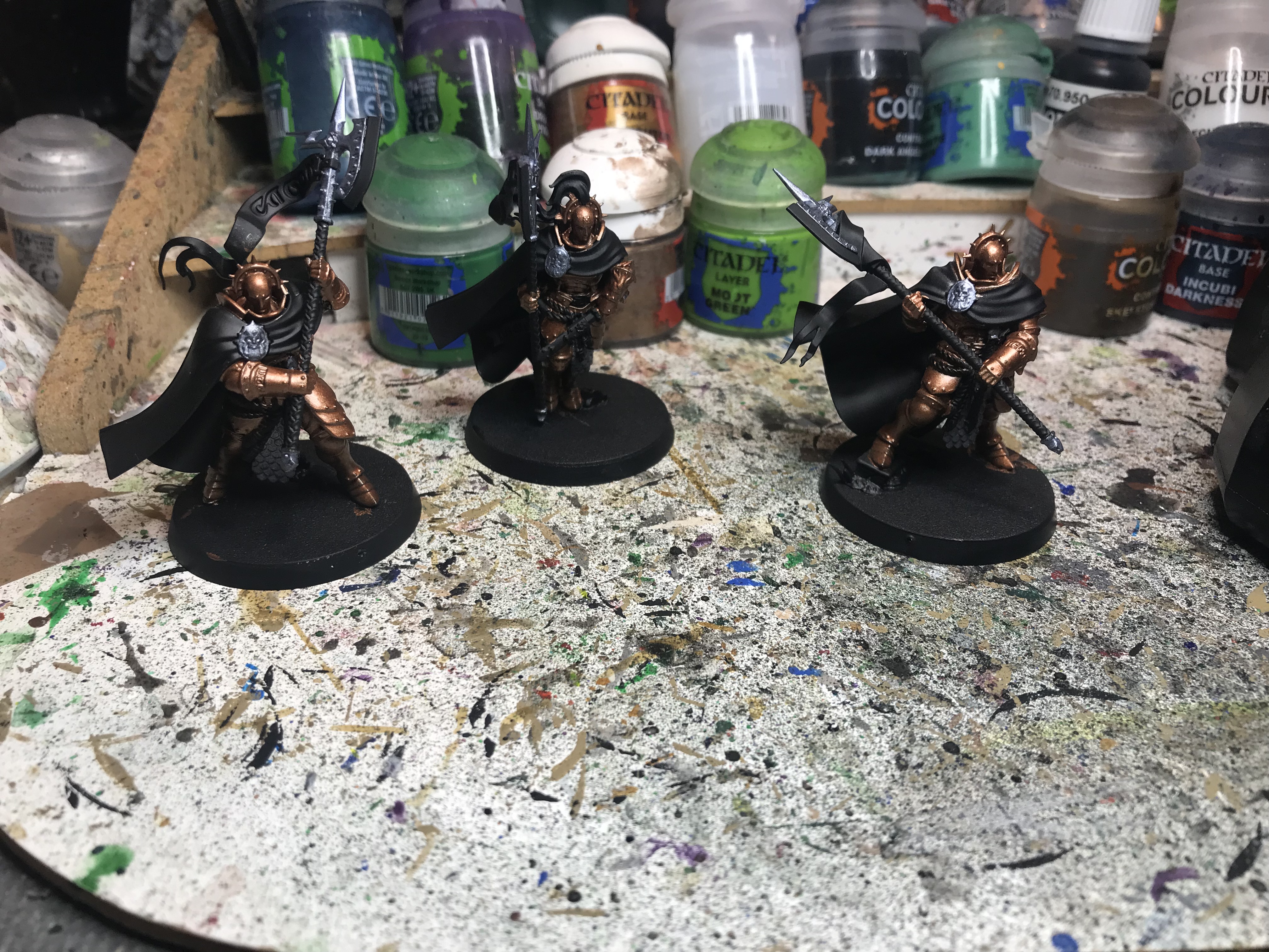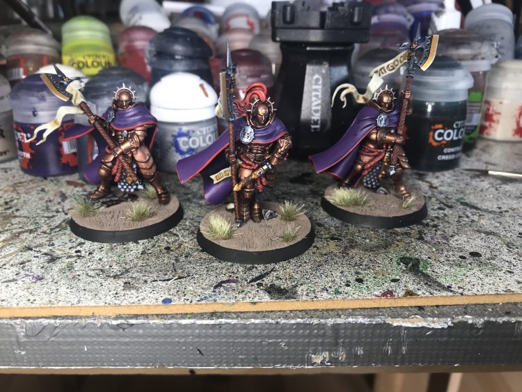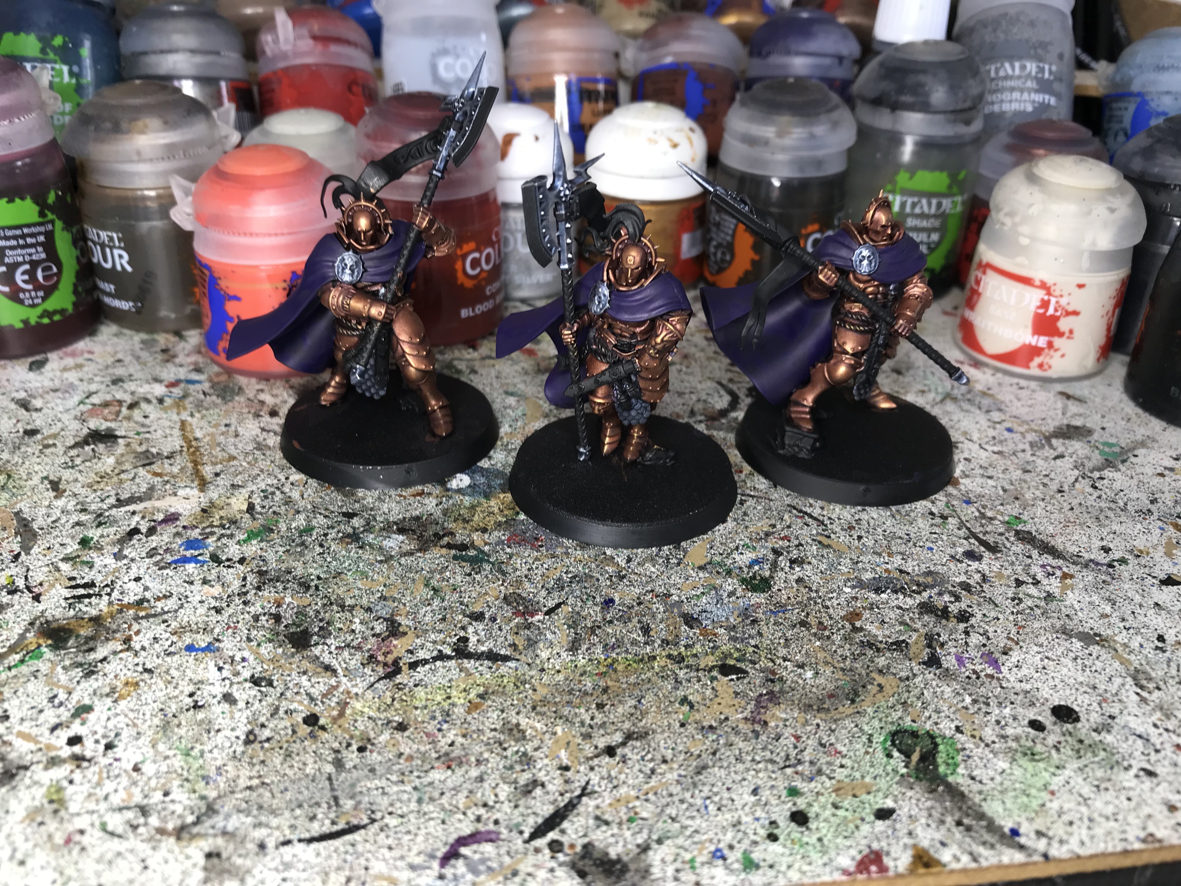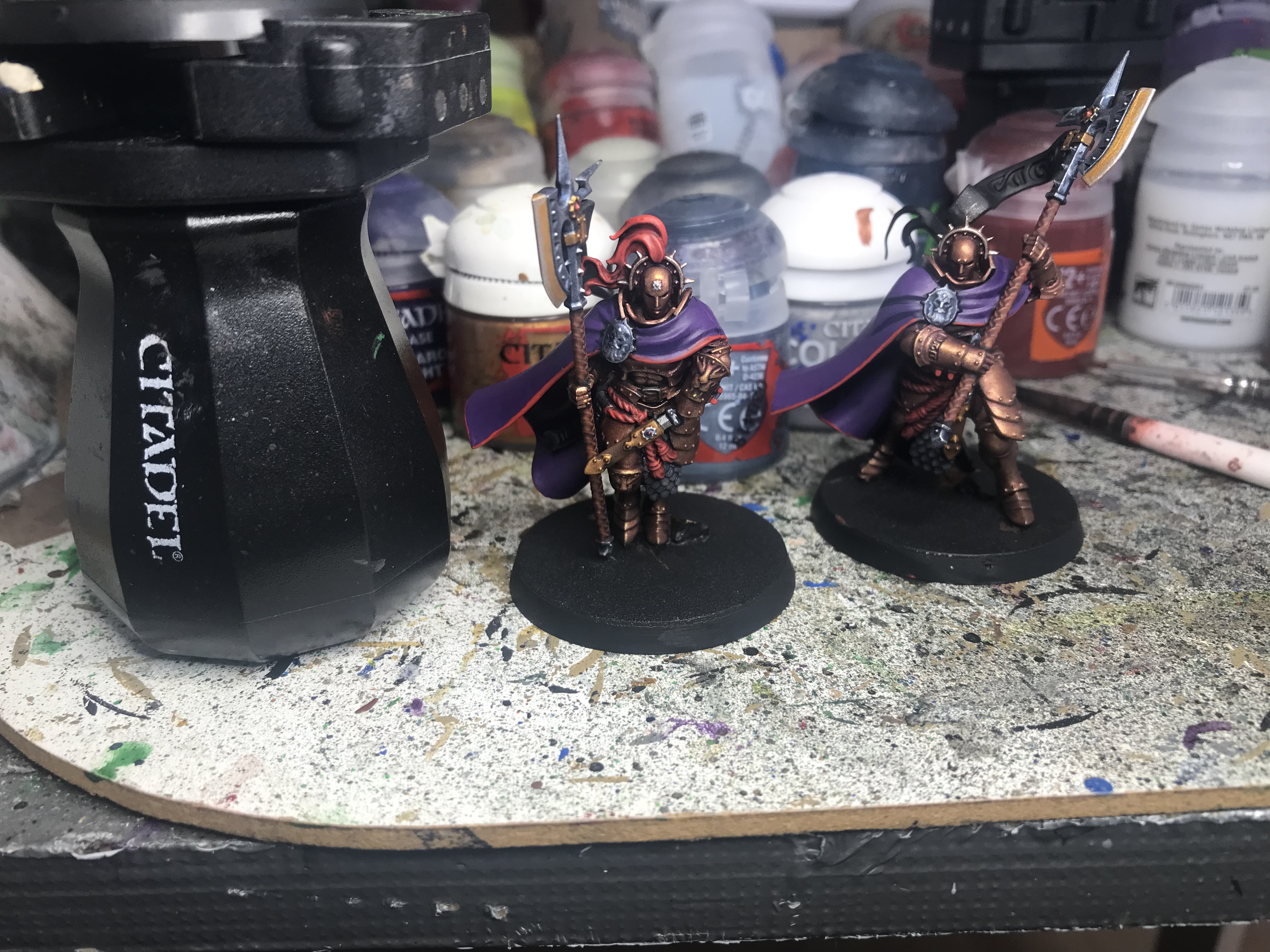 7. Bring up the cloaks with coats of Xereus Purple, re-darkening some of the recesses on the front of the shoulders with Naggaroth.