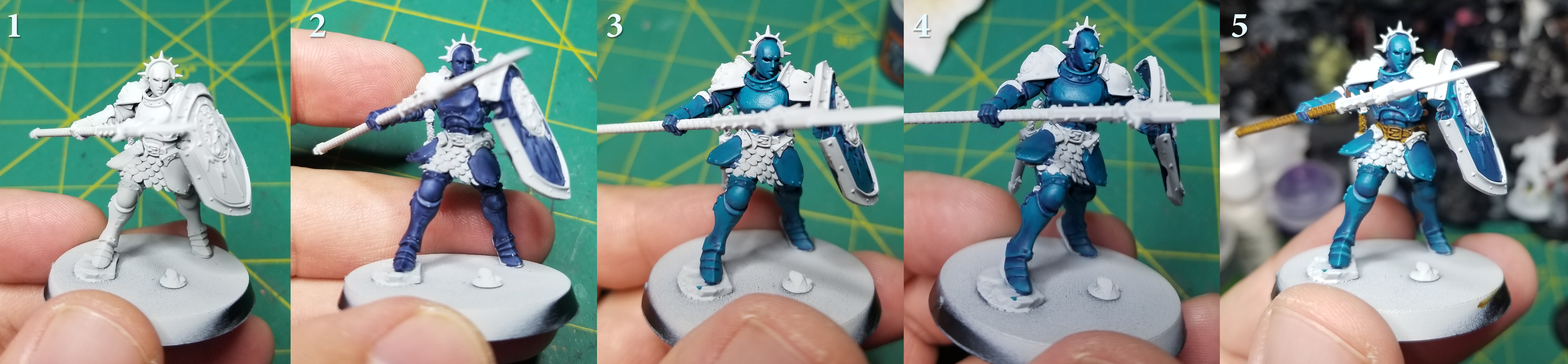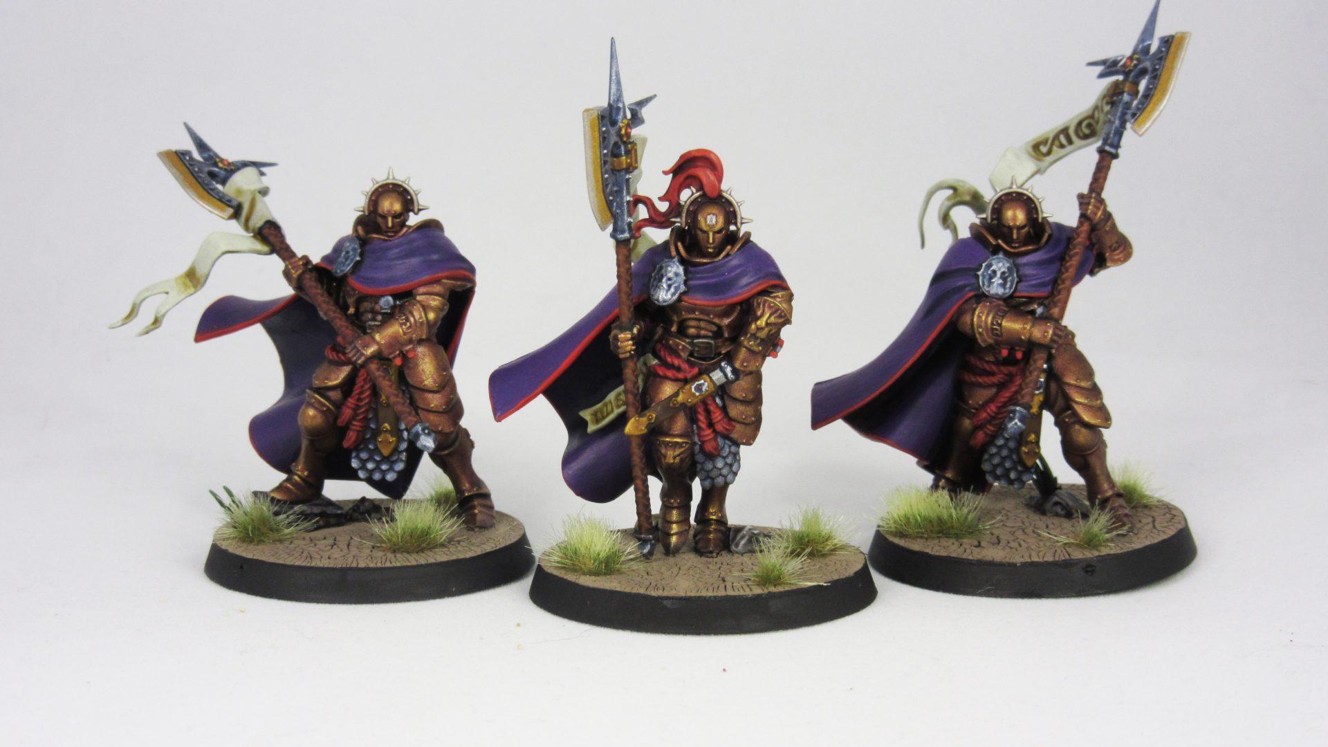 I also wanted to go off-piste from the box scheme, but also wanted to stick to primarily using metalics, because if I'm honest part of the attraction of Stormcast for me is that they can be relatively quick to paint. I picked the Praetors to work on, as I'm a sucker for both cloaks and halberds.
