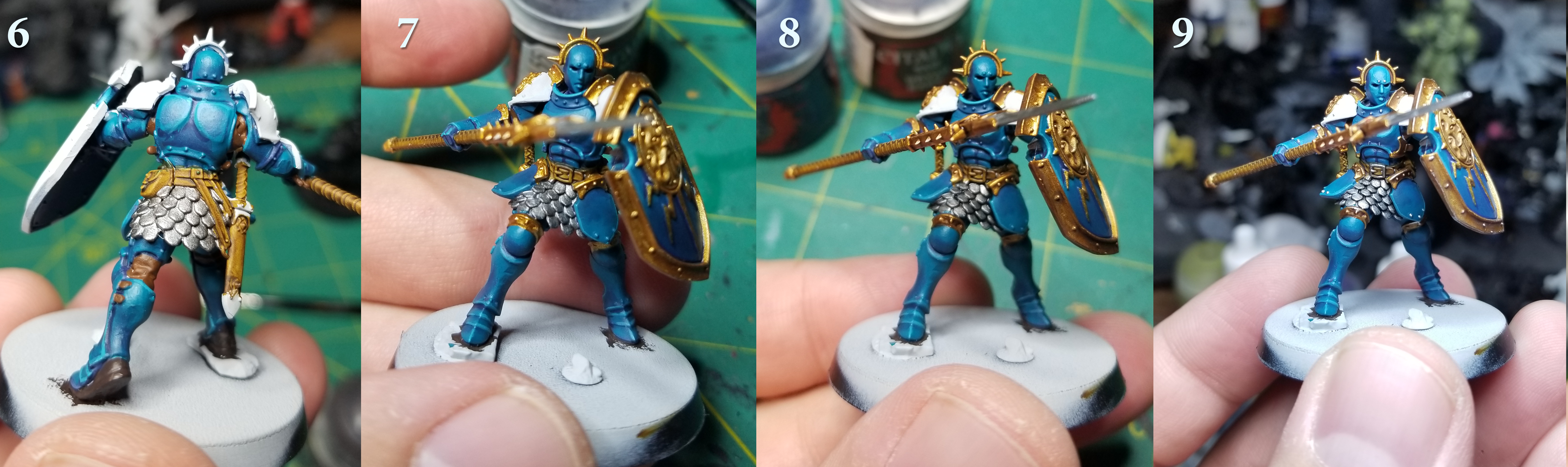 5. Drybrush the gold with Gehenna Gold and the silver with Stormhost Silver.