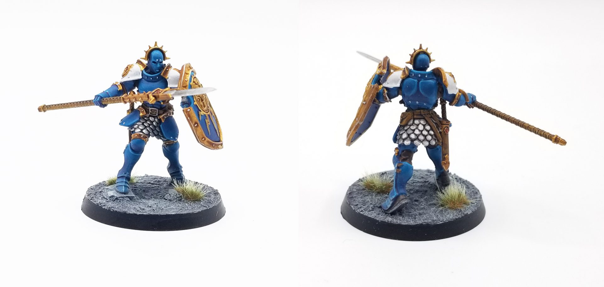 I was looking to do something a bit different from the standard gold method when painting my Stormcast Eternals, figuring that someone else would take on that challenge. So I went with the blue-and-white of the Celestial Vindicators for my Stormcast, which is a cool scheme that lets me use the paints I've already got sitting around for my Alpha Legion dudes.