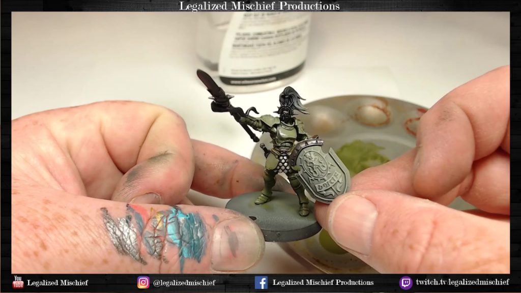 In this picture, the armor has been painted with the enamel washes but the shield has not. You can see how much more green the armor is and how much more of a vibrant and natural tone the enamels brought to the scheme. It's a great tool to have in the tool box.