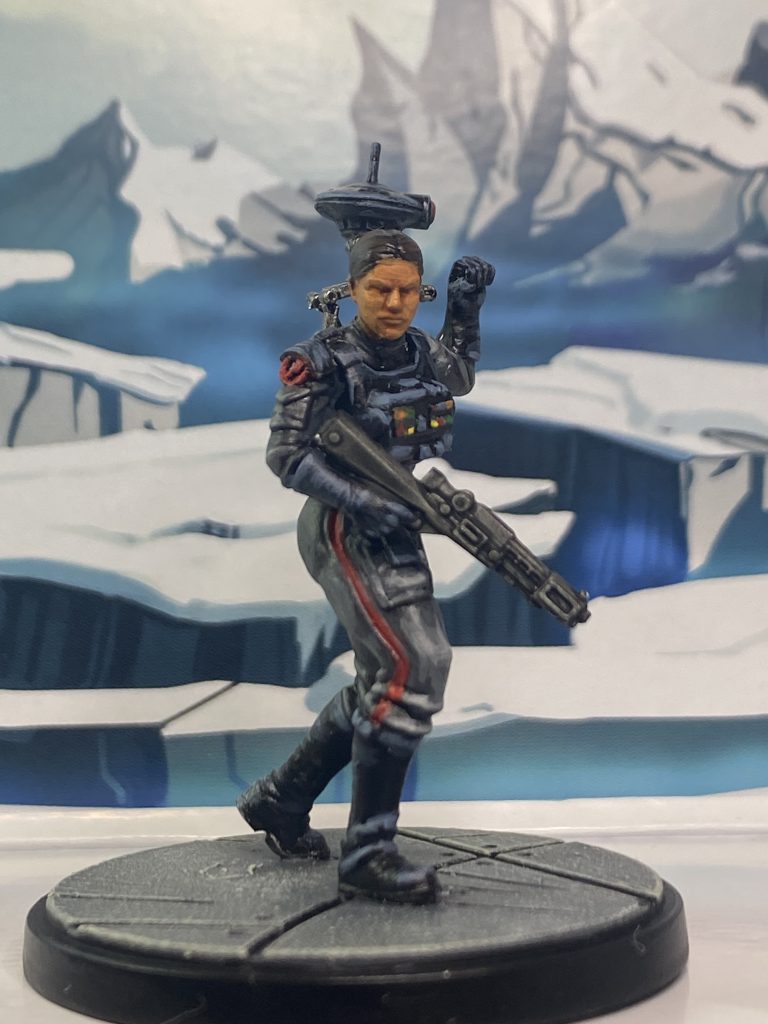 I painted her armour and clothing the same way as the ISF. Iden is smaller than a lot of the other models in this squad box, so I found I had to take care to ensure I used a thinner brush to work around the tighter areas of this model.