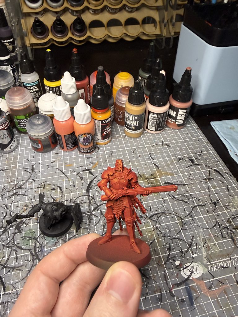 - If you didn't start with basing the model red, cover any panels of armor in PA Bold Pyrrole Red or the another bright, punchy red.