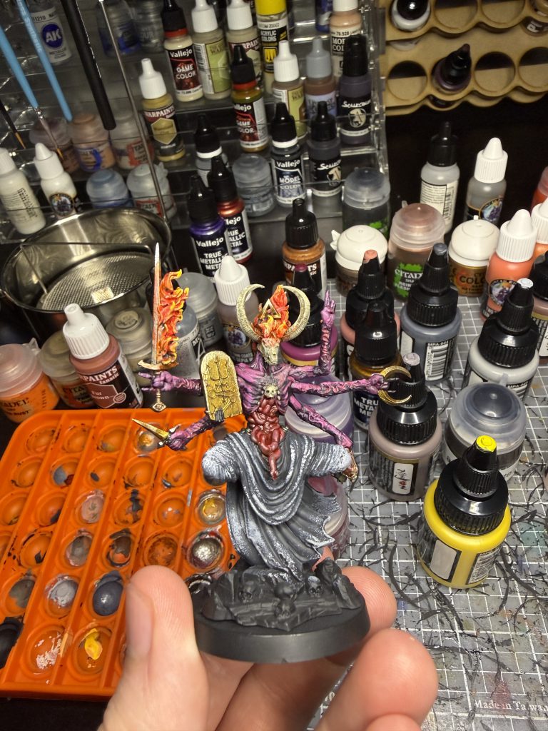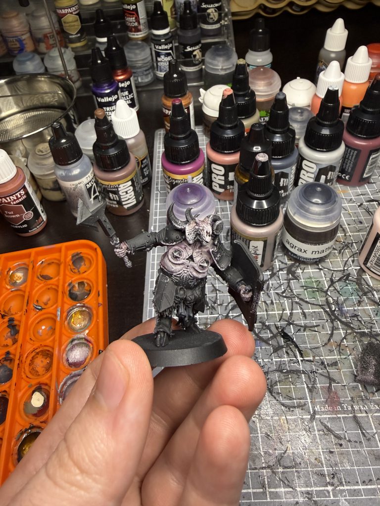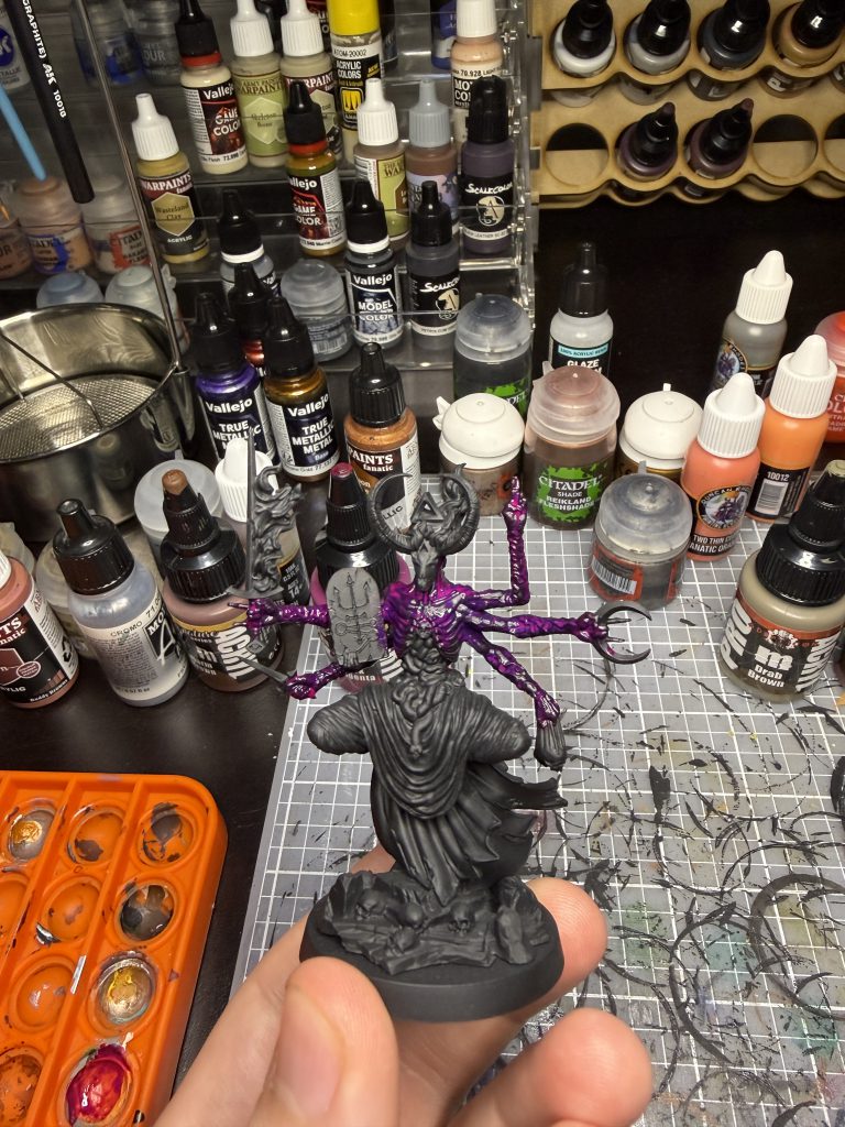 - Finally, water down some Magos Purple Contrast and wash the whole model just to filter it and bring the blends together.