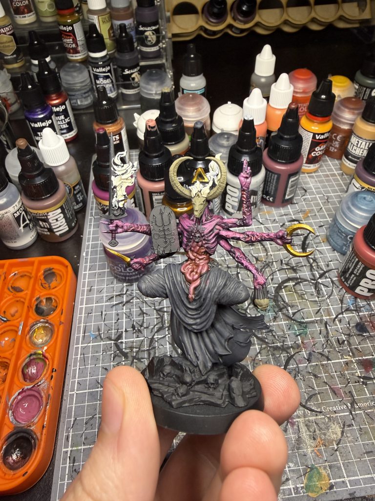 - Highlight up in layers, starting from PA Dark Magenta again. I add bits of PA Shadow Flesh to the Magenta and keep highlighting, then add a tiny drop of Bright Neutral Grey for the final highlight. You can do this in as many layers as you want, I did 4 different layers, then touched up the final highlight.. Ideally you want to work up to an "almost flesh, but still a little unsettling" color.