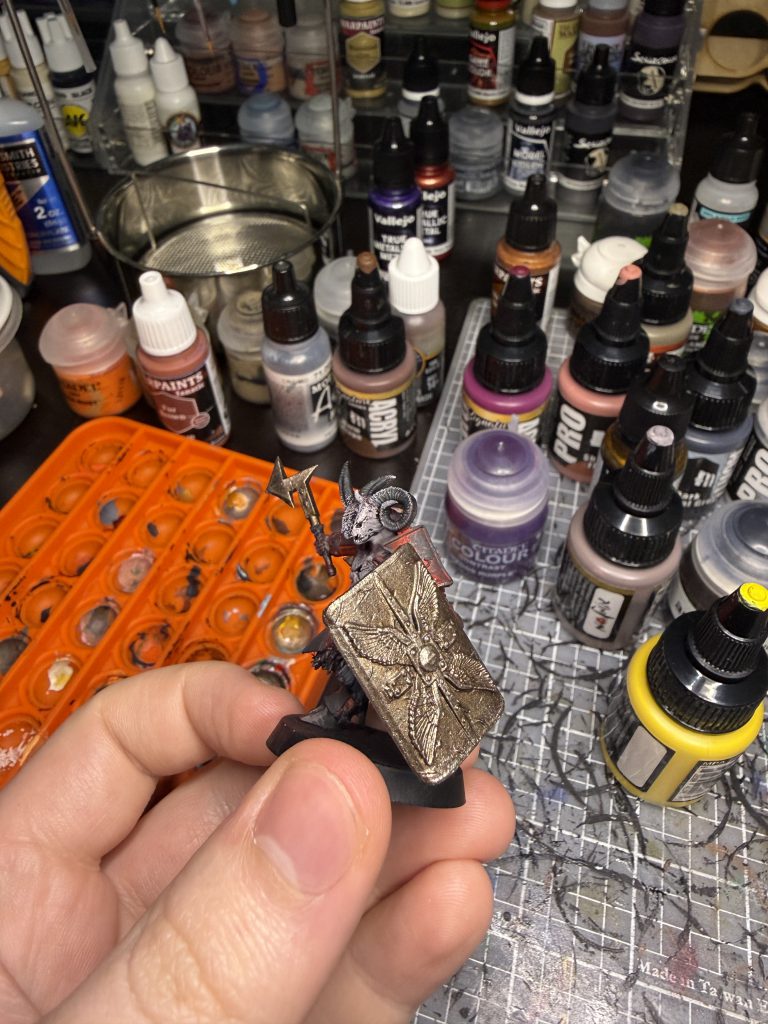 - Other metals used for variety are Citadel Leadbelcher, PA Dark Bronze, PA Dark Silver, and more bits of PA Magnesium. These are for small metal details and weapon handles to add variety.