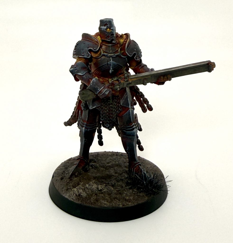 We're going to start with priming our models black. This is pretty intentional for a few later steps, so I'd stick with black unless you don't have access to any black primer. If you have an airbrush or a bright red rattlecan, any models that are primarily wearing armor (Hell Knights, Goetic Warlocks, etc.) you can base coat red now. This isn't a zenithal - you want full coverage here. Don't worry if you don't have either of these, you can do this with a brush easily. I used a few layers of Moltow Red Ink on the Hell Knight for this.