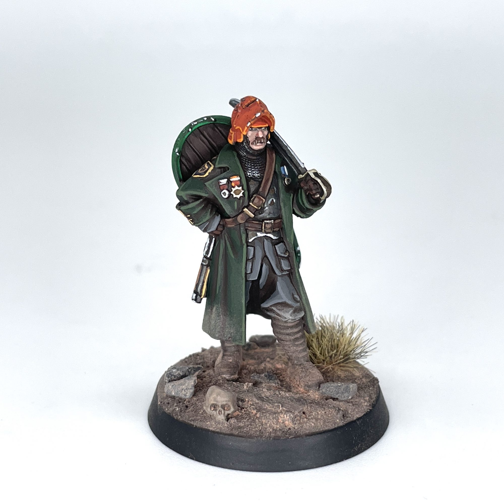 I added a smidge of orange to sell the Irish theme and also get a bit of variation in the models. I also used this on the Lieutenant's helmet as he needed a clear "Shoot me!" sign on his head. If you were doing this over a larger area than just the pauldrons, you could absolutely add more steps mixing colors, but this was all mine took.