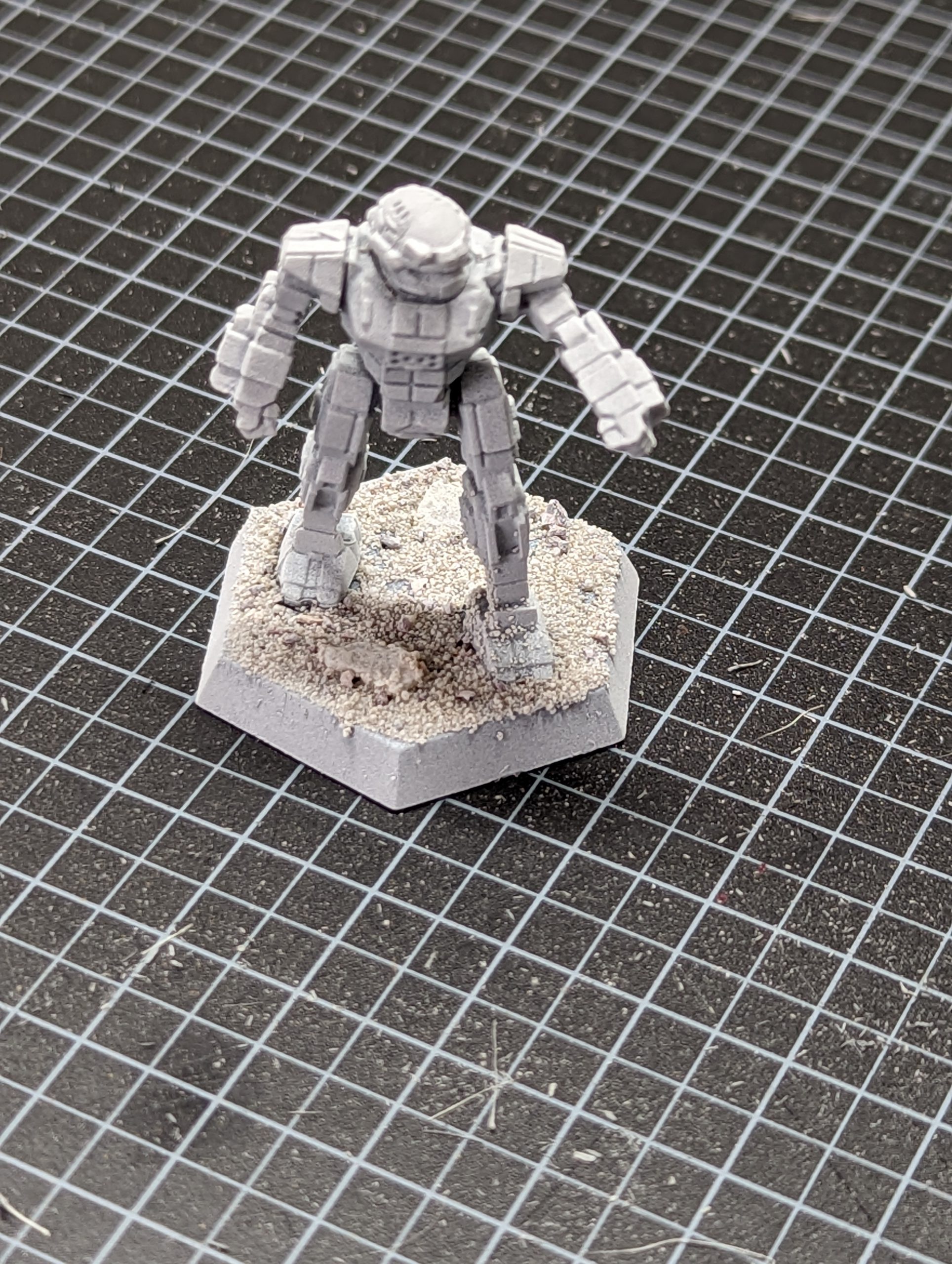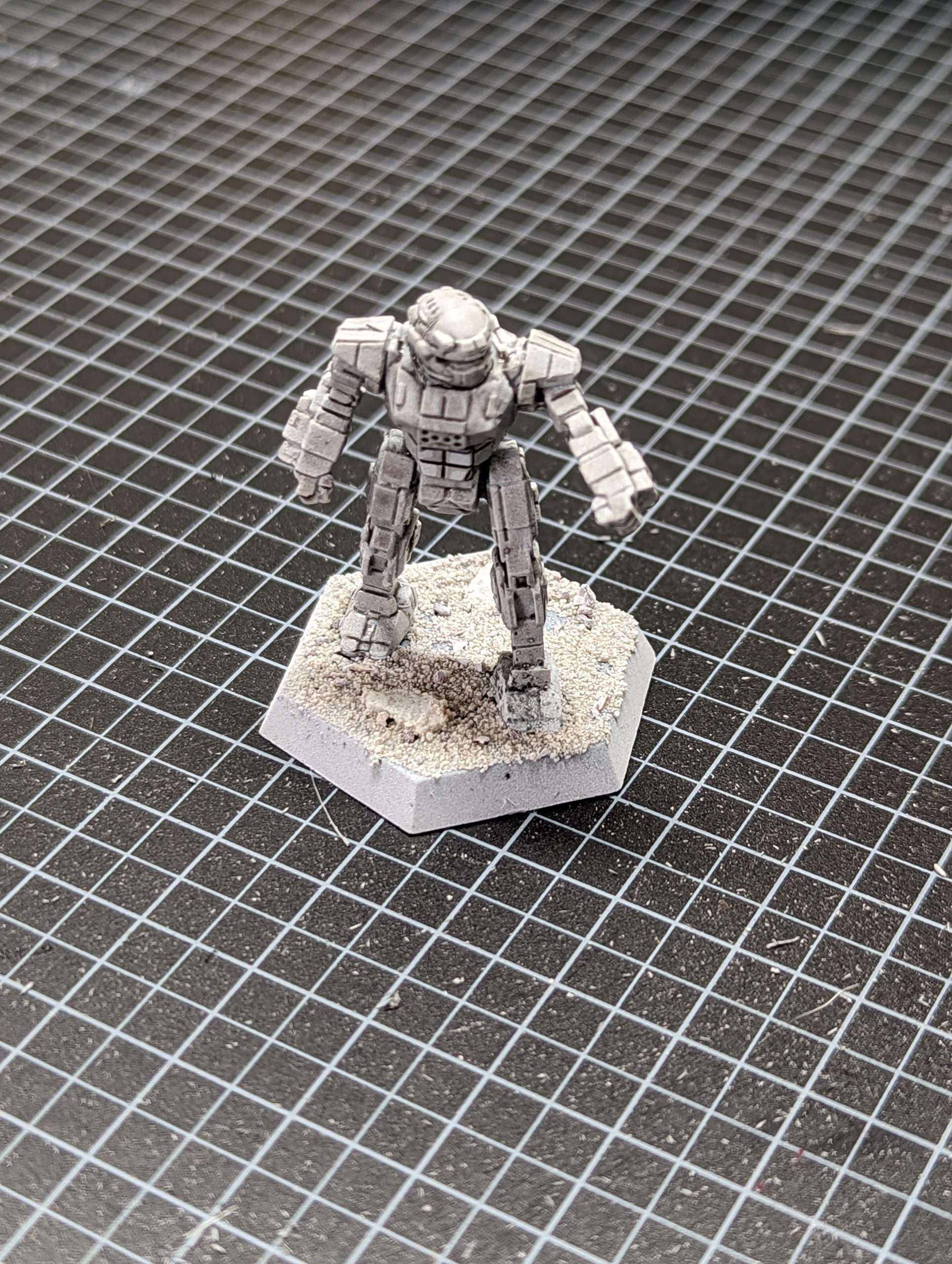Battletech Commando Mech - undercoated in White Scar by the author.