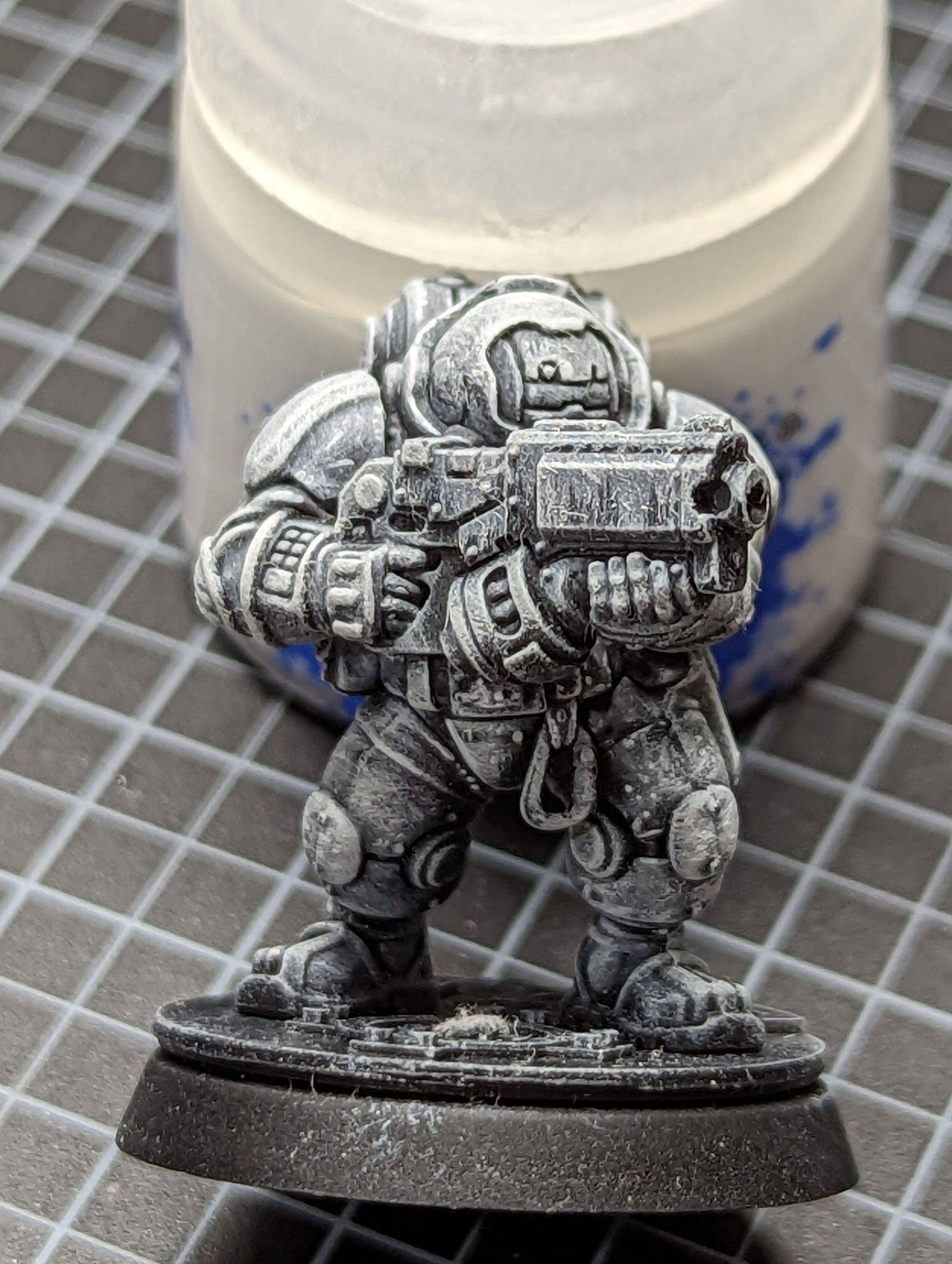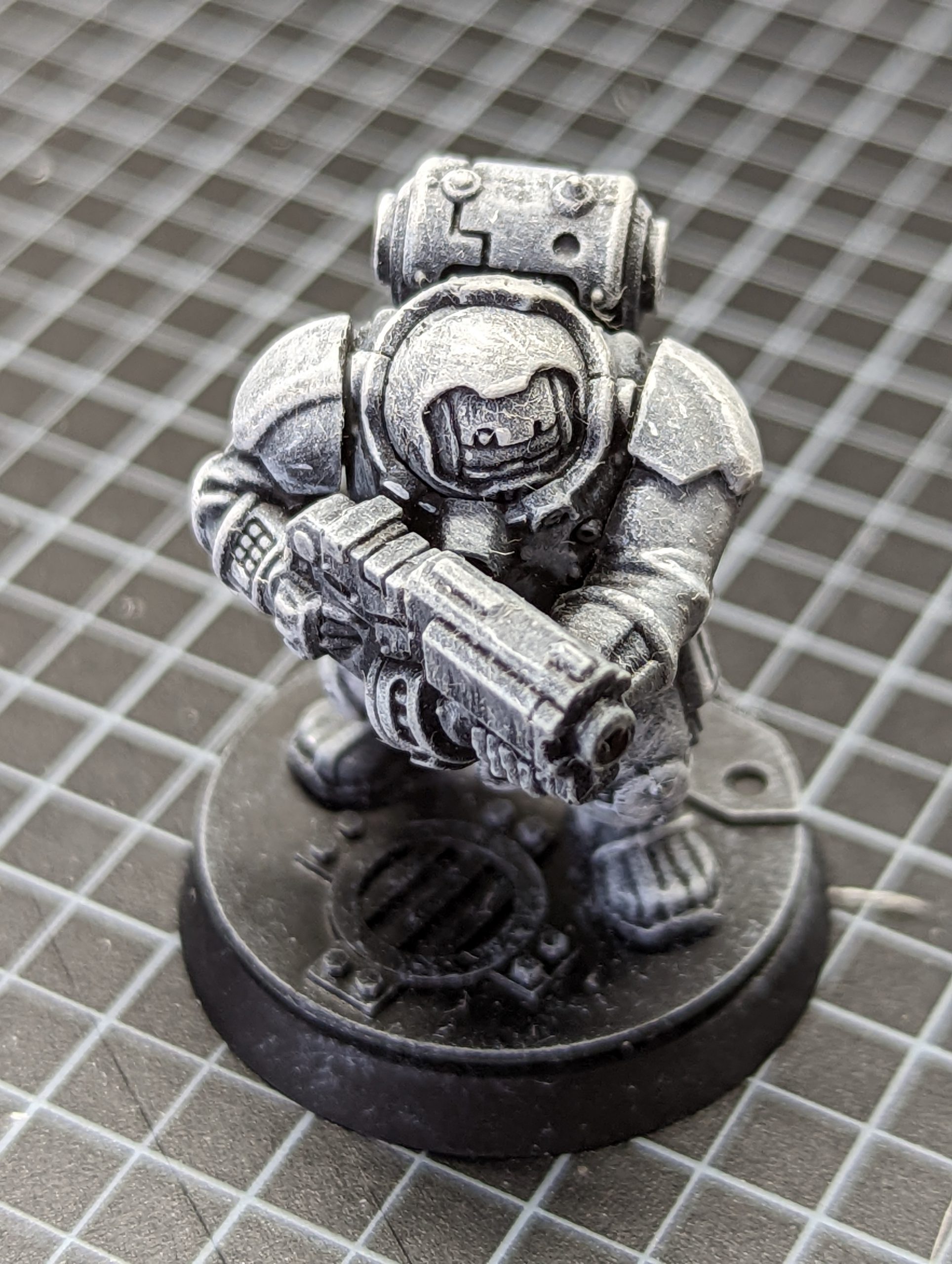 Grisaille with Administratum Grey, Longbeard Grey and White Scar drybrush as before.