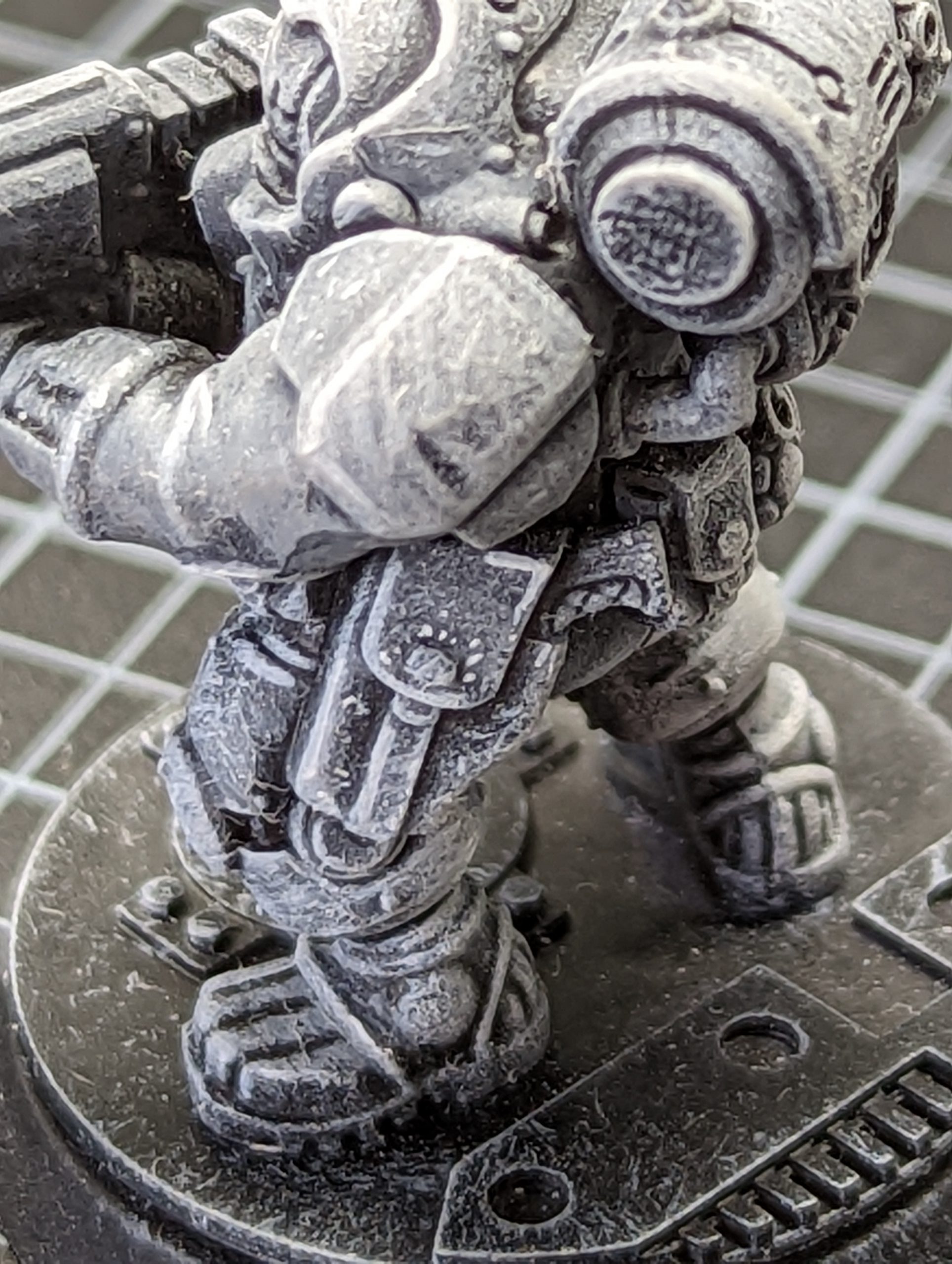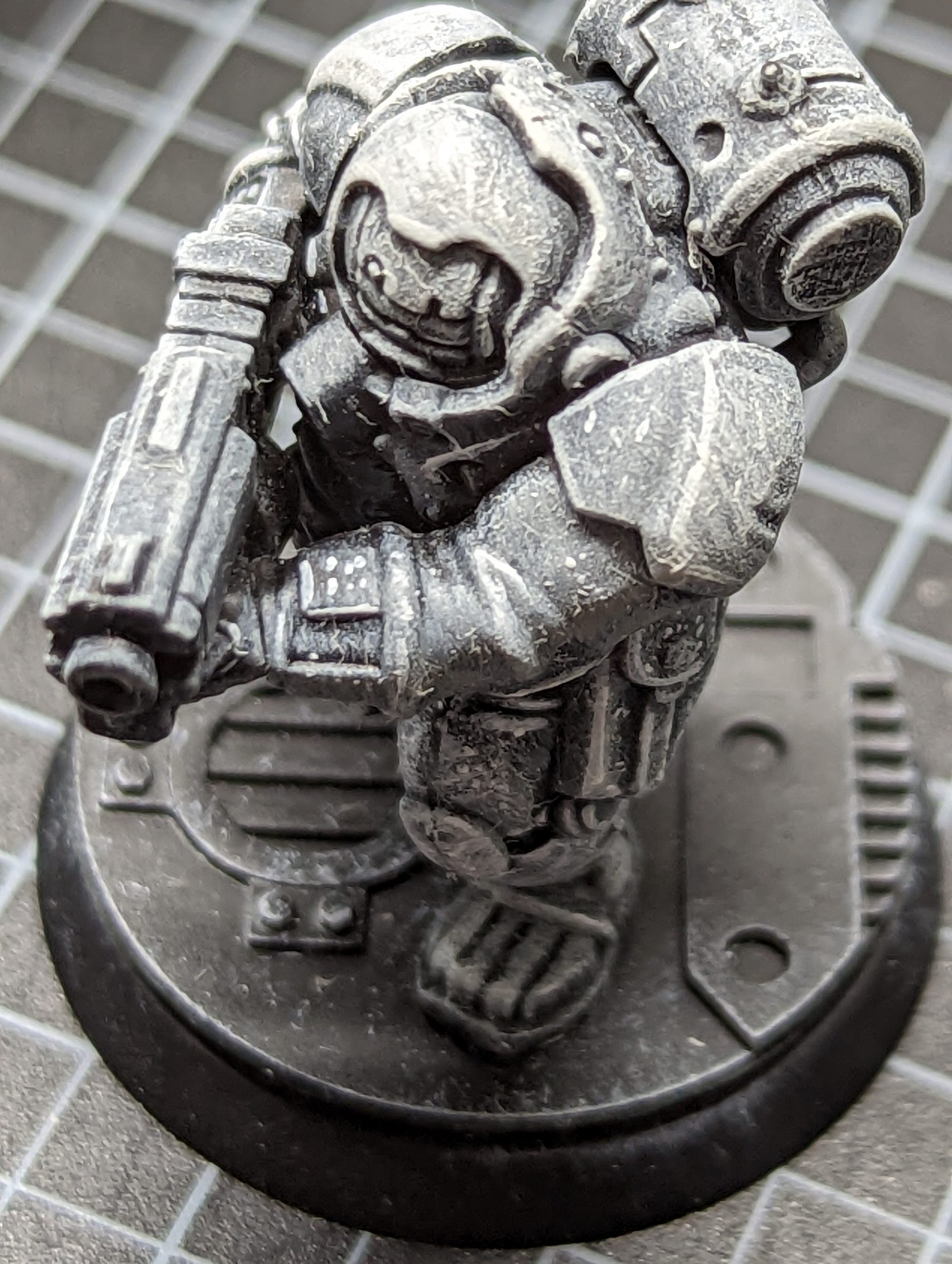 This immediately brings out all the surface detail, even down to grains of sand that have stuck to the leg during basing.