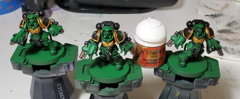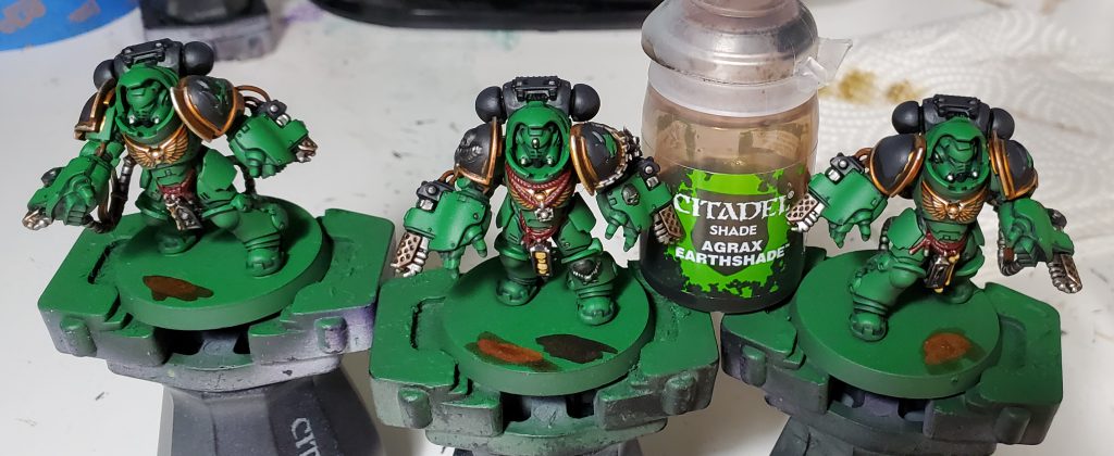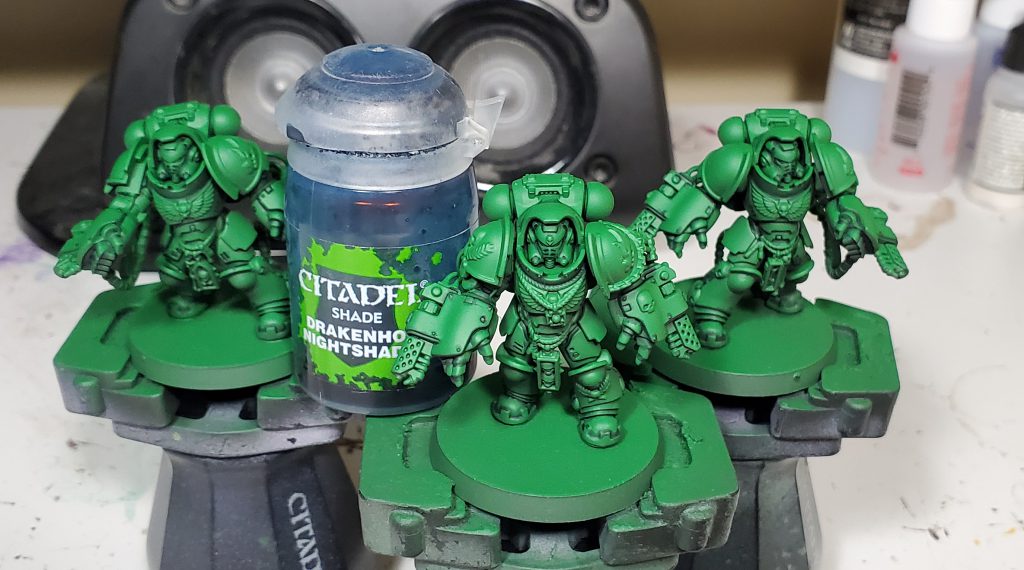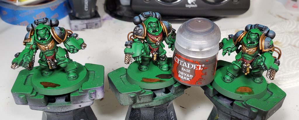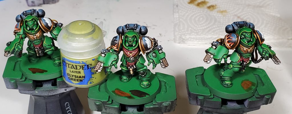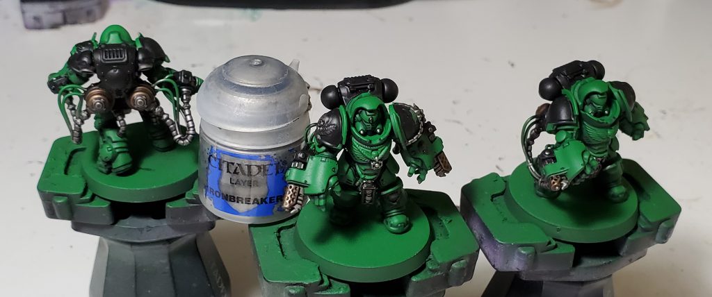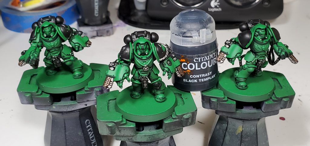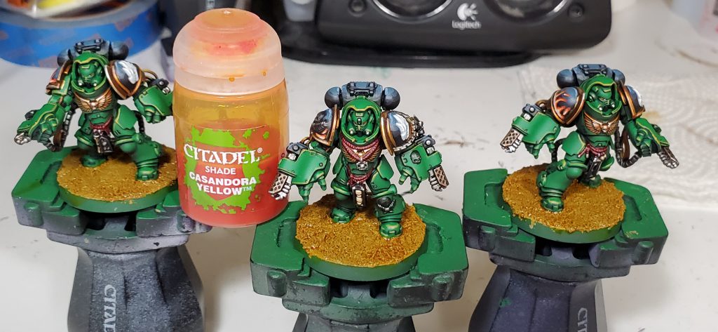 Salamanders are my second largest army after Tyranids and my scheme has gone through quite a number of iterations. This will be the 3rd revision in as many years - mind you I only started collecting this army with Dark Imperium. While the core green, black and gold retain the same base coats, I switched up washes and highlights to really bring the recipe in line with my more recent style. I think I have managed to make this new generation of Marines striking without clashing too hard when combined with the rest of my army.