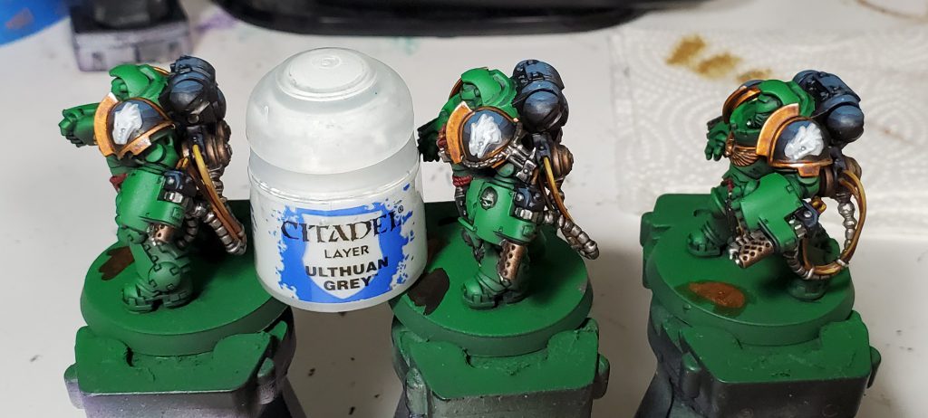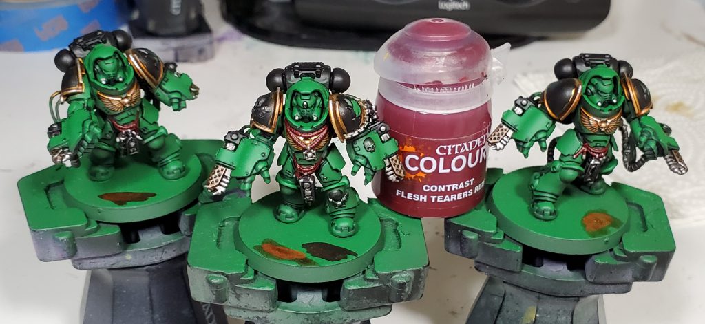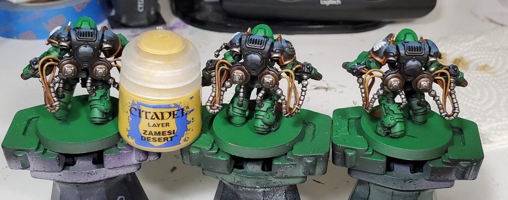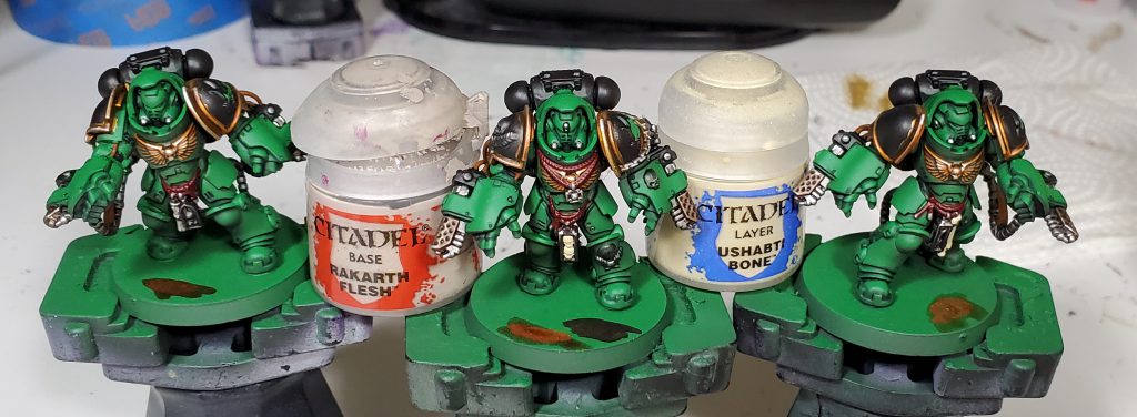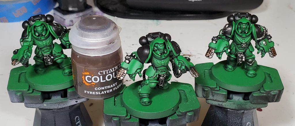 While in a bit more logical order than my Death Guard scheme, I will apologize in advance for my tendency to bounce between different colours as this guide is in chronological order. In addition, I will mostly not list the specific colours in the accompanying text as that can get pretty repetitive and a bit redundant with the paints being in the pictures themselves, instead I am mostly going to be talking about why I made a colour choice.