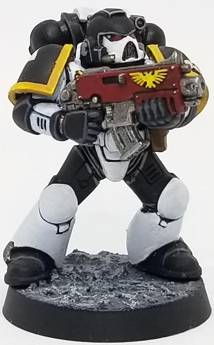 The end result is pretty basic and while this is an older model (I haven't painted one of these guys in a few years), I'm eager to come back to them and start painting some primaris marine soon.