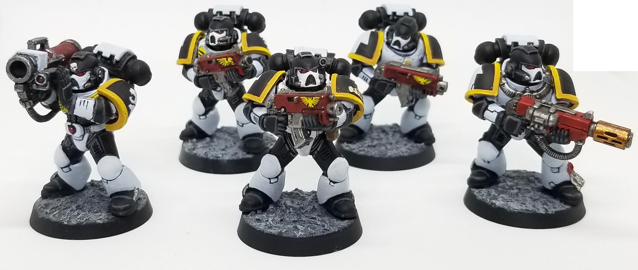 I first saw the chapter and their scheme in an issue of White Dwarf in 1997, and I loved the color scheme so much I wanted to do an entire army of them. From a Heraldry standpoint, the White Panthers hew pretty close to the Index Astartes, using the same markings and colors as the Ultramarines. That means my White Panthers are all from the second company.