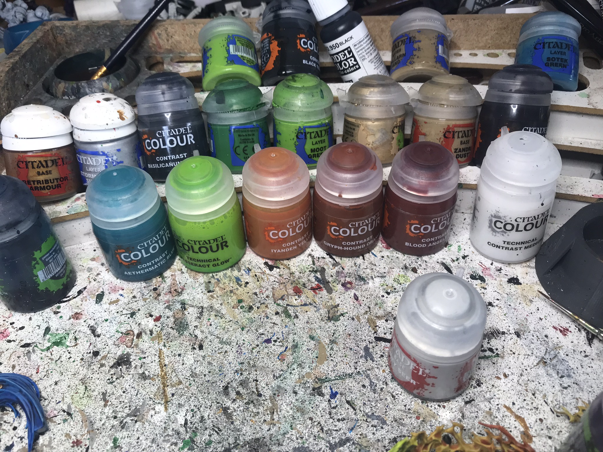 shockingly well. I had to do a bit of tidying, and then used drybrushing to finish off the colour at various points. I can't recall if the above picture was pre- or post-drybrush, but basically all I did on top of the contrast was light brushes of: