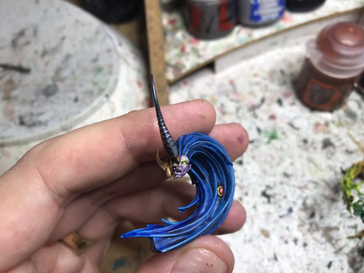 Getting this together was a complete pain and I abraded the paints off the tips of some bits of the swirl, but luckily this was very easy to tidy up with thinned contrast of the appropriate colour. Once the