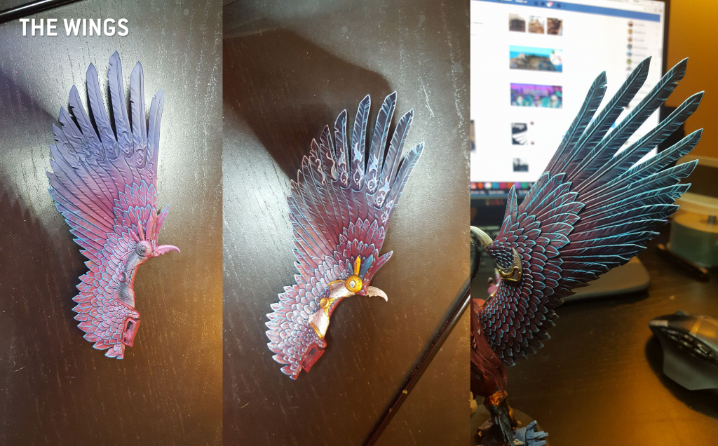 The most time-consuming part of Magnus was easily the wings. Each took me about a week to paint, mostly because of the sheer amount of details on each. Once I'd done the gradient, I did some clean-up with