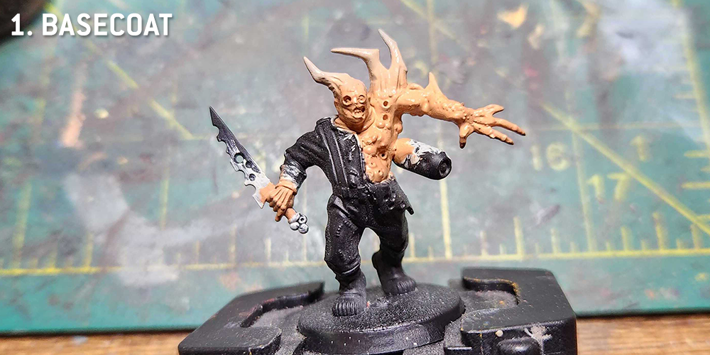 If you want to go with Contrast paints for the flesh that's fine too - start with a flesh color, wait for that to dry, then start applying washes in the next step.