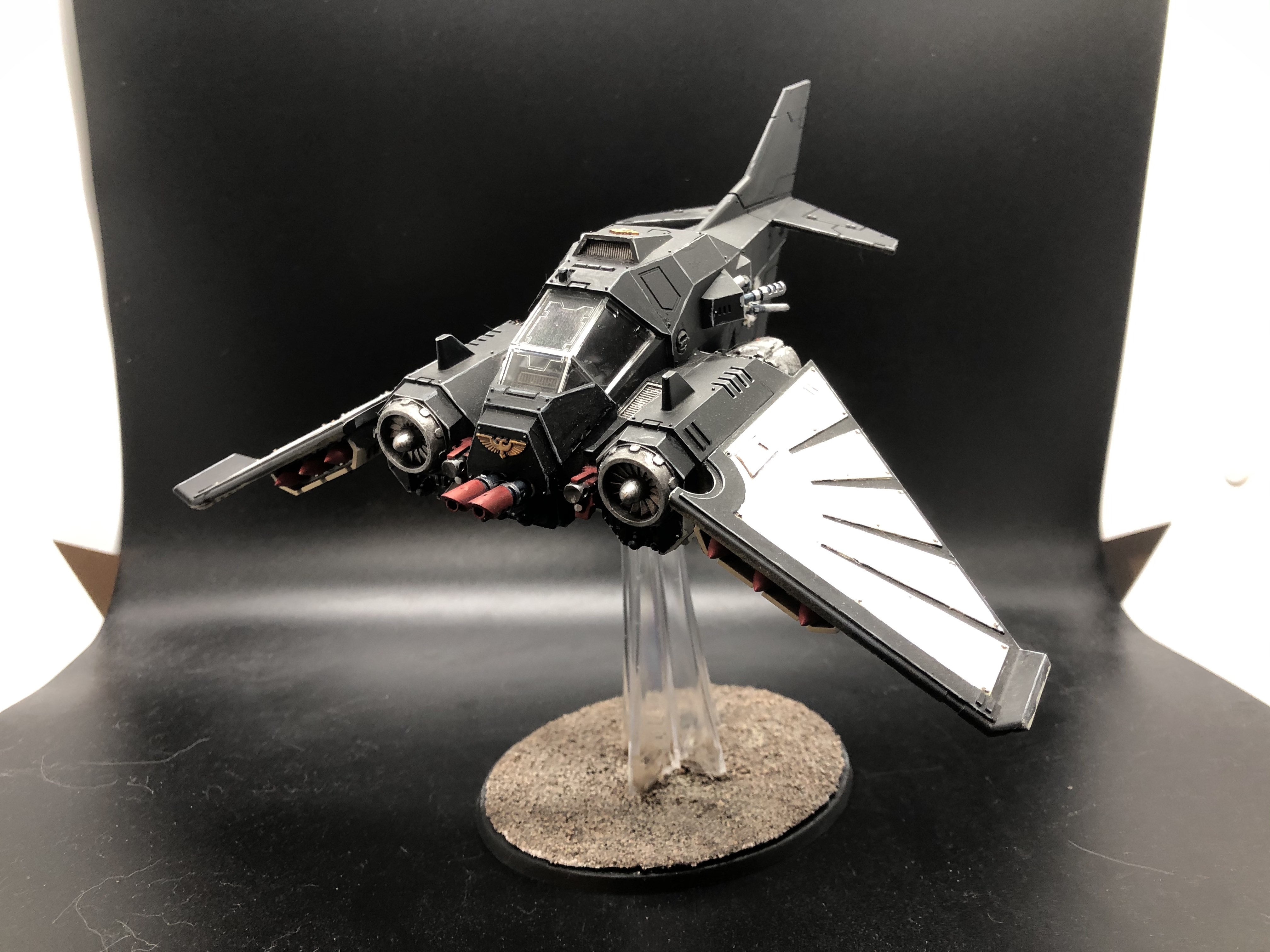 The Ravenwing weren't really part of my original all-Terminator plan for my Dark Angels, but along the way I picked up some bikes and a pair of the flyers shortly after they released. And along the way I picked up a third, which became my second Stormtalon bomber, after TheChirurgeon got sick of me refusing to field a better list for NOVA 2019 and crowing about having nothing I needed to paint.