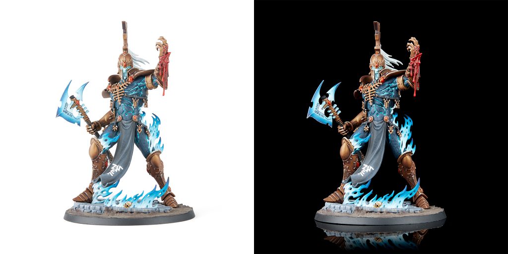 Comparison of black and white backgrounds with an Avatar of Khaine. Credit: Jack Hunter