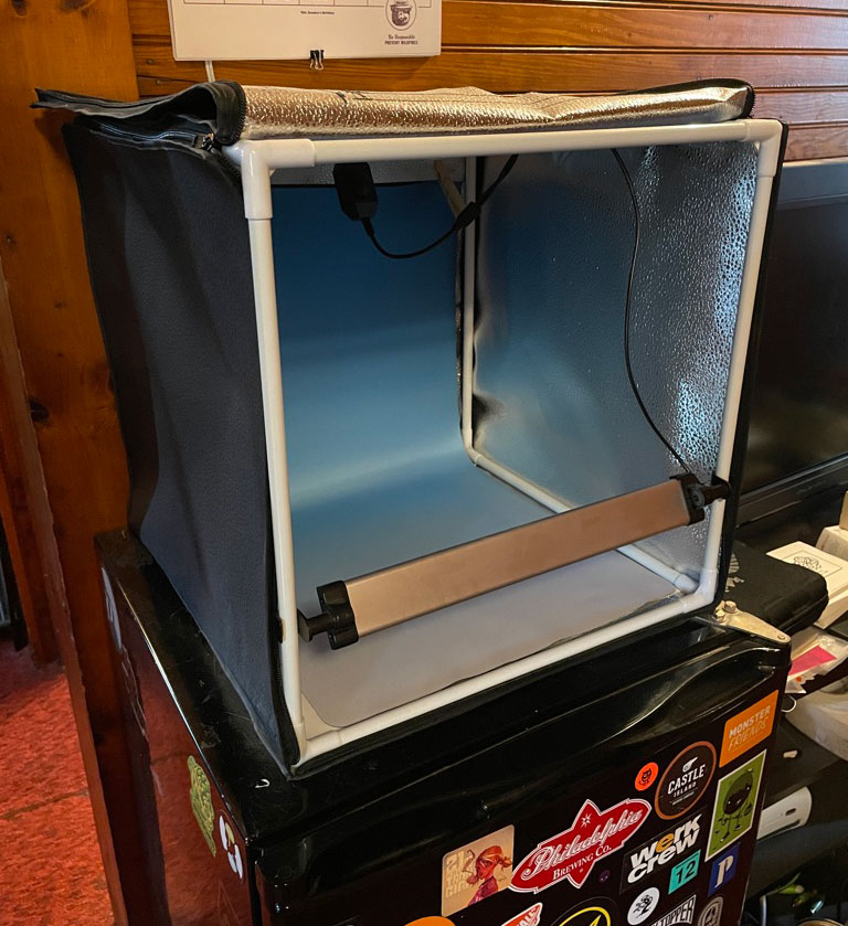 The lights inside the standard booth are alright, but if you can aim a lamp in there as well, you might be surprised by the results you can get out of it. Especially if you want to get a nice quick shot of something in progress / just finished, your booth can look great.